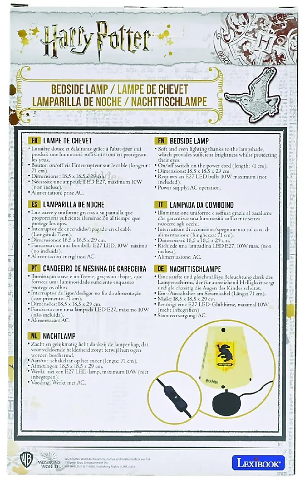 « Magnifique Lampe de chevet Harry Potter.•Décorez la chambre de vos enfants avec ce design de l’univers Harry Potter.•Lumière LED pour profiter d’un éclairage économe en énergie.•L’abat-jour apporte une lumière douce et vous évite la lumière directe.•La lampe s’allume via une ampoule E27 (non incluse). Longueur du cordon d’alimentation 71cm. Fonctionnement sur secteur.* Dimensions : 18.5 x 18.5 x 29 cm. »