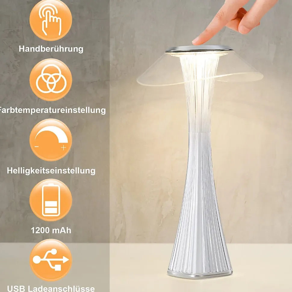 Design unique : cette lampe de table LED séduit par sa forme géométrique moderne qui sublime n’importe quelle pièce. Que ce soit dans la chambre, le bureau ou le salon, elle s’adapte parfaitement à tous les styles d’intérieur et souligne votre personnalité. Intensité variable : cette lampe permet un réglage continu de la température de couleur de 3 000 K à 6 500 K et un réglage continu de la luminosité. Une simple pression sur un bouton sur le dessus suffit pour passer du jaune chaud au blanc éclatant et ajuster la luminosité selon vos besoins : l’éclairage parfait pour chaque ambiance. Sans fil et longue durée de vie : la batterie intégrée de 1 200 mAh vous libère des câbles et vous offre une expérience utilisateur flexible et sans fil. Le port de charge USB permet une charge facile et pratique. Matériau de haute qualité : cette lampe de table est fabriquée en ABS de haute qualité, robuste, durable et sûr. Dimensions : 15,1 x 15,1 x 27,4 cm. Disponible en blanc classique et en or pour répondre à vos besoins individuels. Cette lampe de table LED 3 W est économe en énergie et extrêmement durable. Applications polyvalentes : cette lampe de table LED convient à une variété d’applications, telles que les chambres, les bureaux, les salons ou les salles d’étude, offrant une expérience d’éclairage agréable.