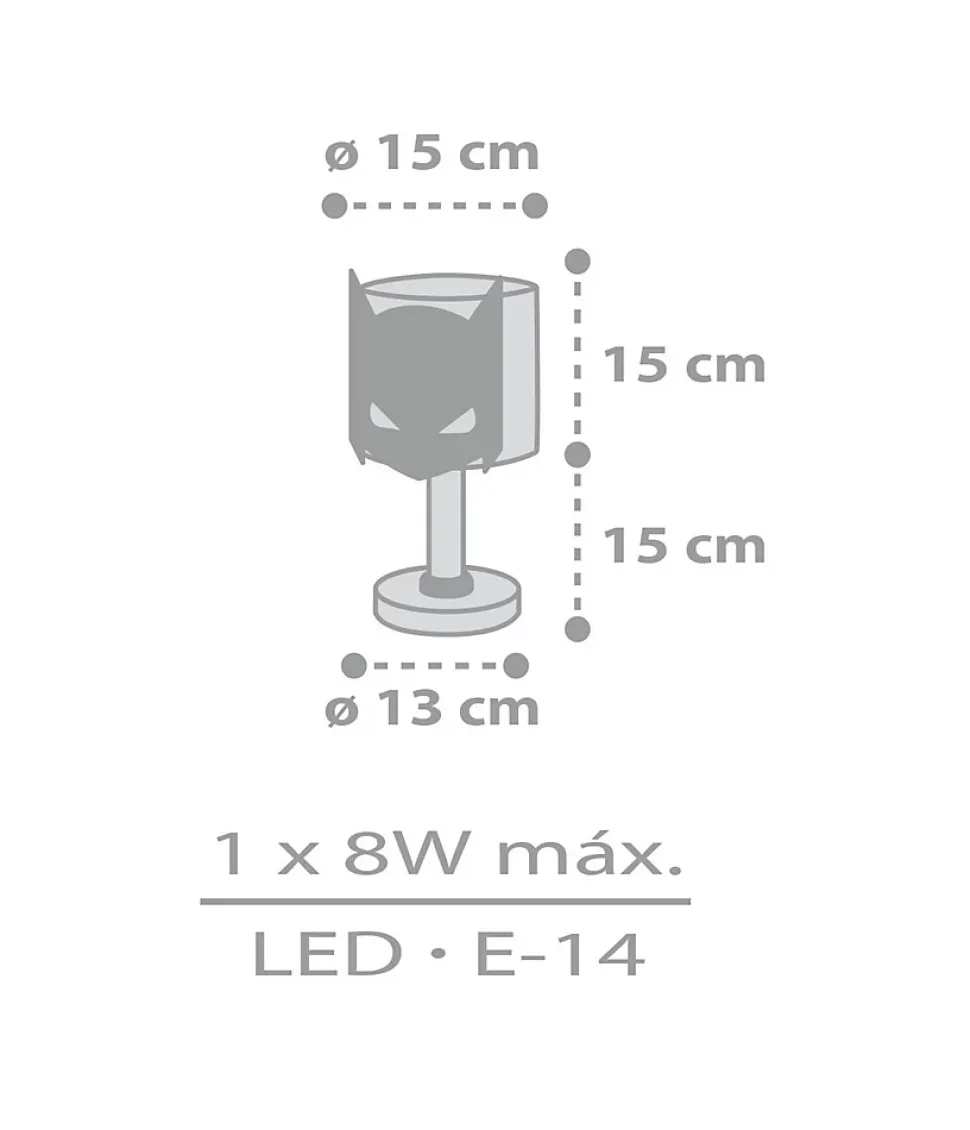 Lampe de table pour enfants Dark Hero. Éveillez votre courage et votre imagination avec ce super-héros et transformez chaque nuit en une aventure épique. Fabriqué avec double écran en polypropylène transparent. Brille dans le noir !