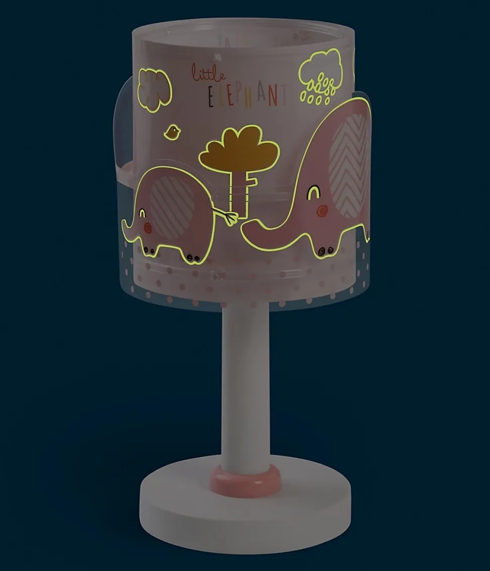 Lampe de chevet elephant roseLa lampe de chevet éléphant Little Elephant de couleur rose est idéale pour éclairer les surfaces de la chambre de bébé. Avec son double paravent en polypropylène transparent et le design de quelques sympathiques éléphants en rose, il donnera la touche originale et tendre dont la pièce a besoin.Lampes de chevet fluorescentLes lampes de chevet pour enfants de la collection Little Elephant ont un effet de fluorescence: lorsque la lumière est éteinte, lorsque la pièce est sombre, les petits profiteront pendant quelques minutes de leur légère lueur fluorescente .