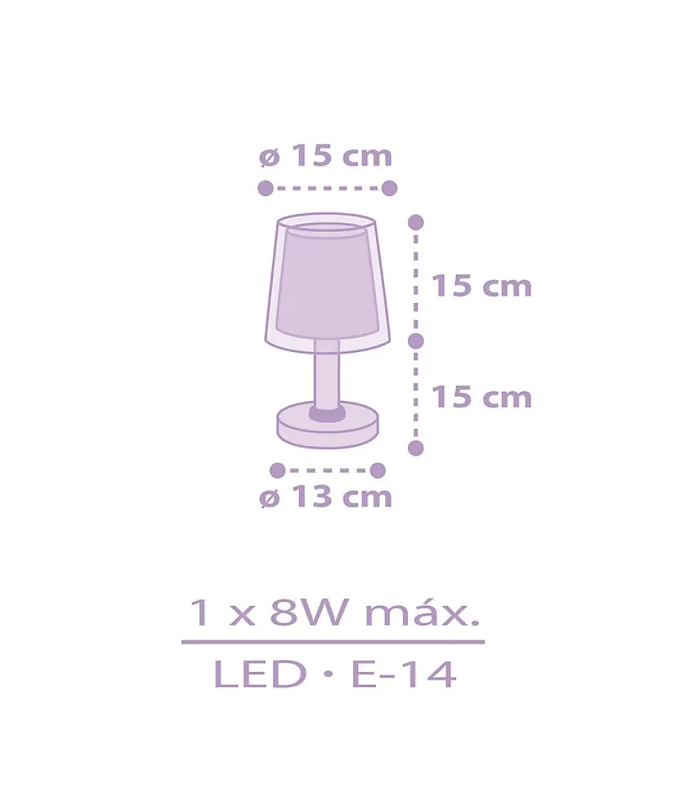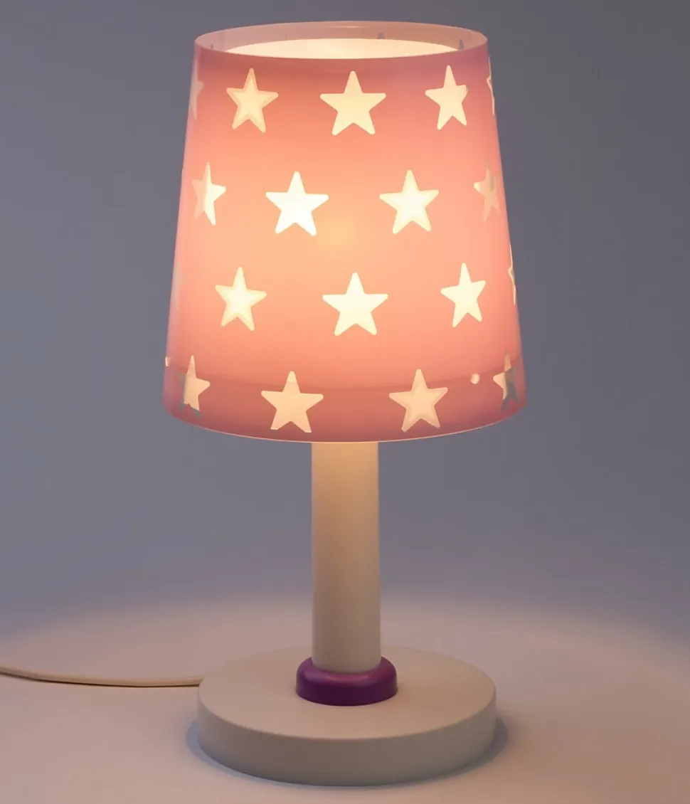 Lampe de chevet étoile pour enfants mauveLa lampe de chevet étoile de la collection Stars, de couleur mauve, apportera ce motif étoile original sur la petite table de la chambre des enfants. Avec double écran en polypropylène transparent pour garantir une utilisation totalement sûre par les enfants. Les étoiles de la lampe pour enfant avec étoiles de la collection Stars brillent dans le noir : lorsque la lumière est éteinte, pendant quelques minutes la lueur des étoiles accompagnera les plus petits pendant qu’ils s’endorment.Combinez la lampe de table à étoiles avec les autres lampes pour enfants de la même collection pour réaliser un ensemble unique et original
