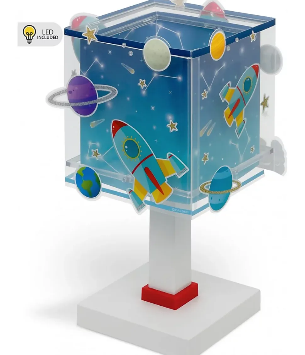 Lampe de chevet pour enfant Rocket Fusée lancement de fusée dans l’espace avec double écran transparent avec motifs découpés.