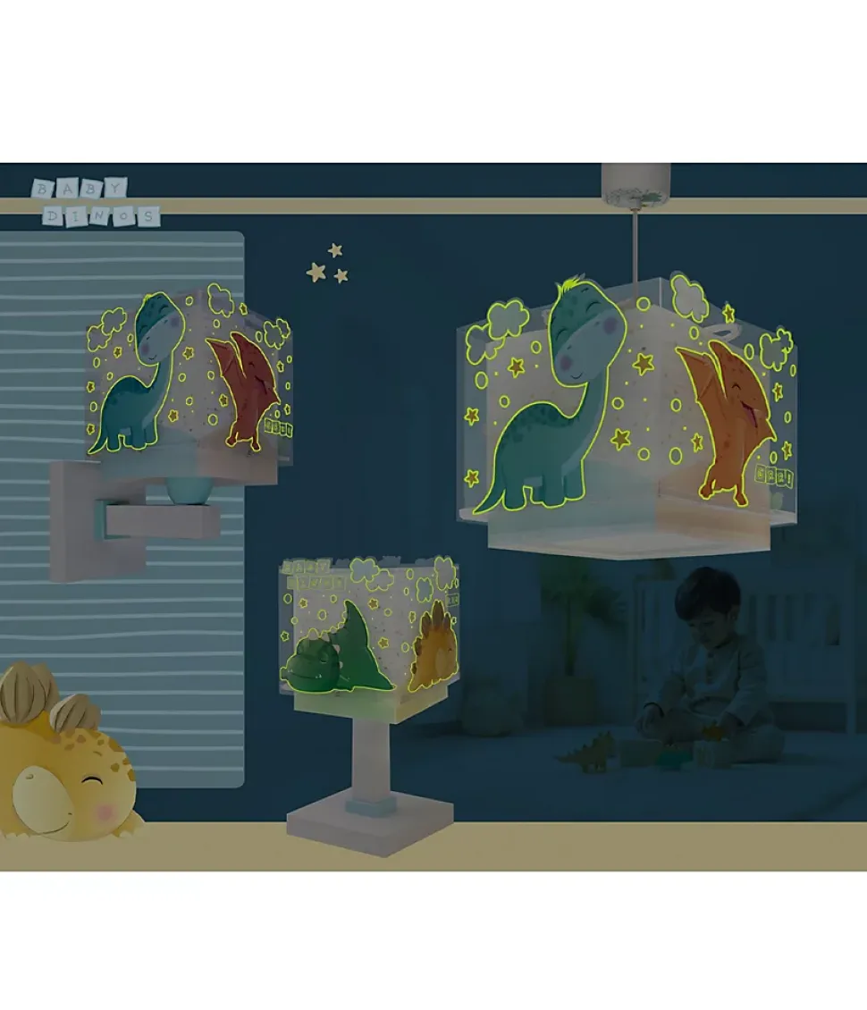Lampe de chevet pour enfants Baby Dinos DinosauresQuand vous éteignez la lumière, l’aventure commence ! Une chambre sombre n’est plus une source d’angoisse. Avec la lampe de table Baby Dinos, la nuit se transforme en un petit voyage dans le monde jurassique le plus adorable qui soit. Pas de rugissements, seulement les murmures lumineux de petits dinosaures qui veillent sur le sommeil de ceux qui les regardent. Lorsqu’elle est allumée, tout est baigné d’une lumière chaude. Lorsqu’elle est éteinte… quelque chose change, les silhouettes des bébés dinosaures brillent d’une lumière douce et magique, comme si elles flottaient dans l’obscurité. Idéal pour créer un espace sûr et accueillant.