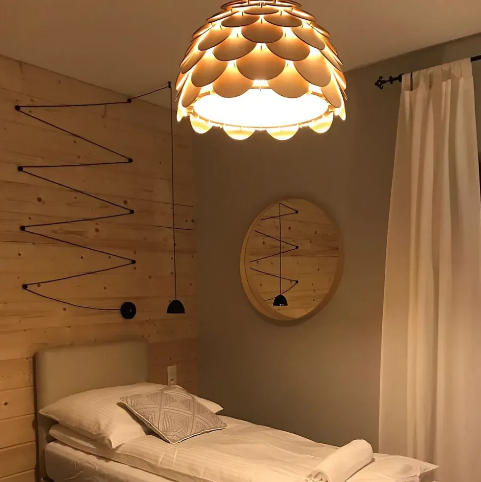 La petite suspension Burgo est une décoration unique qui séduira les amateurs de design original. Son abat-jour, composé d’éléments en bois délicats agencés comme une écorce d’ananas, confère aux intérieurs un charme unique. Elle trouvera parfaitement sa place au-dessus d’une table de salle à manger ou de cuisine, y ajoutant une touche subtile et naturelle. La lampe Burgo offre une source de lumière unique tout en diffusant une douce lueur chaleureuse. Sa couleur bois naturel s’intègre harmonieusement à de nombreux styles de décoration, notamment champêtre, bohème ou naturel. Burgo n’est pas qu’une simple lampe : elle crée une atmosphère unique qui apportera une ambiance particulière à votre intérieur. Découvrez le charme de la lampe Burgo et affirmez l’originalité de votre décoration.
