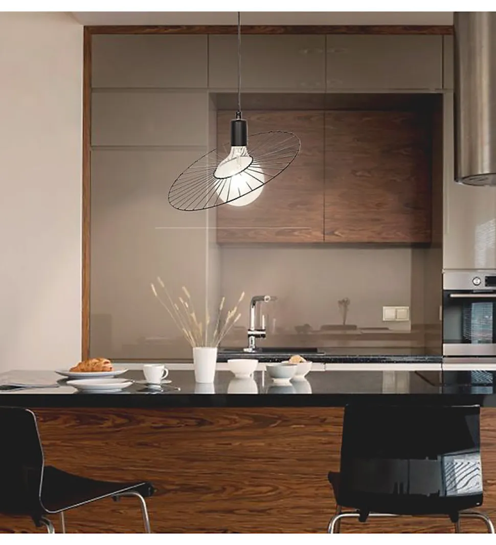 Lampe suspension design sphère en métal noir E27 60. WDécouvrez cette suspension très design qui apportera une touche moderne à votre intérieur.DESCRIPTIF :- Type de produit : Suspension- Matériau : Métal- Finition : noir- Usage : IntérieurCARACTERISTIQUES TECHNIQUES : – Dimensions : H150 cm – L35 cm- Compatible Ampoules : LED, Halogène, basse consommation- Culot : E27- Nombre d’ampoule : 1 (non fournie)- Puissance : 60 Watts max. – Longueur câble : 140 cm- réglable en hauteur : OuiCE QUE NOUS AIMONS : Cette lampe suspension au design élégant apportera une touche contemporaine à votre intérieur.La hauteur de la suspension peut être réglée avant l’installation.Cette lampe décorative sera du plus bel effet placée dans toutes vos pièces.Pour des économies d’énergie, privilégiez l’utilisation d’ampoule LED.