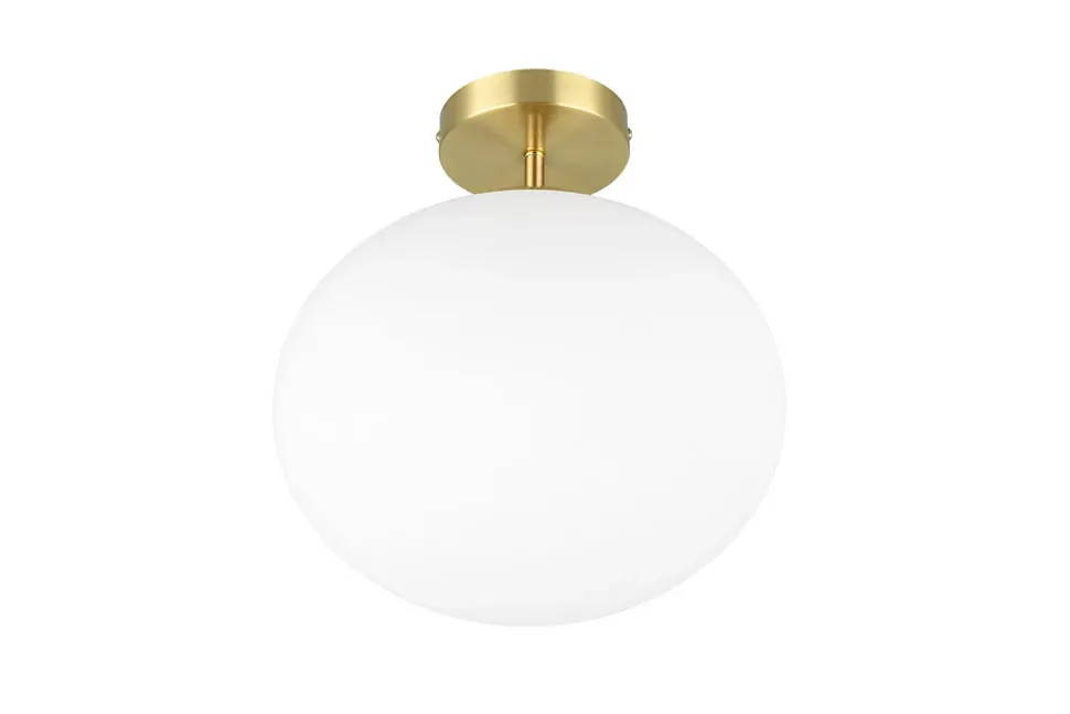 Le plafonnier Fomento allie modernité et élégance grâce à son corps en métal et son diffuseur en verre blanc. Disponible en laiton mat ou noir, il diffuse une lumière douce et agréable, idéale pour les salons ou chambres. Ce luminaire compact et sophistiqué est parfait pour ajouter une touche de raffinement tout en garantissant un éclairage optimal.