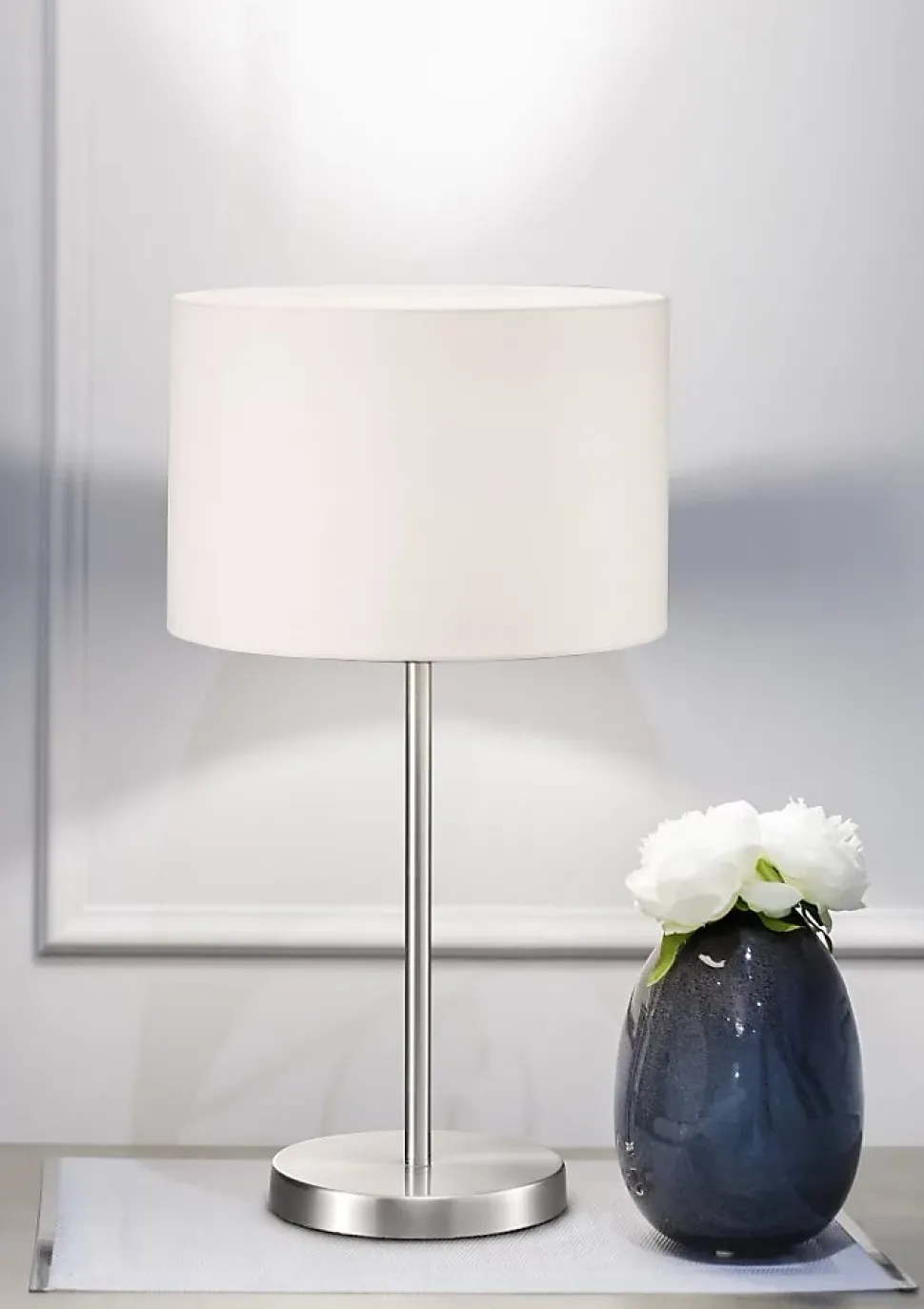 Les caractéristiques techniquesLa lampe de table Hotel de la marque Trio séduit par son élégance simple. Son abat-jour en tissu blanc diffuse une lumière douce et homogène, idéale pour une ambiance chaleureuse et non éblouissante.Le corps en métal nickel mat apporte une finition classique et moderne. Ce luminaire est compatible avec une ampoule E27 d’une puissance maximale de 60W (non fournie). Nous recommandons l’usage d’une ampoule LED pour optimiser la consommation énergétique et la durée de vie.Les avantages esthétiquesSon design intemporel lui permet de s’intégrer facilement dans différents styles d’intérieur, du classique au contemporain.Equipée d’un interrupteur sur cordon, la lampe est facile à utiliser au quotidien.Avec un indice de protection IP20, elle est conçue pour un usage intérieur, parfaite pour le salon, la chambre ou le bureau.