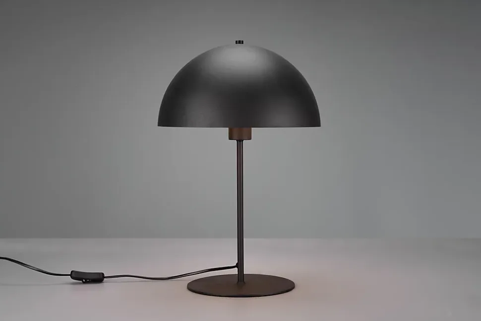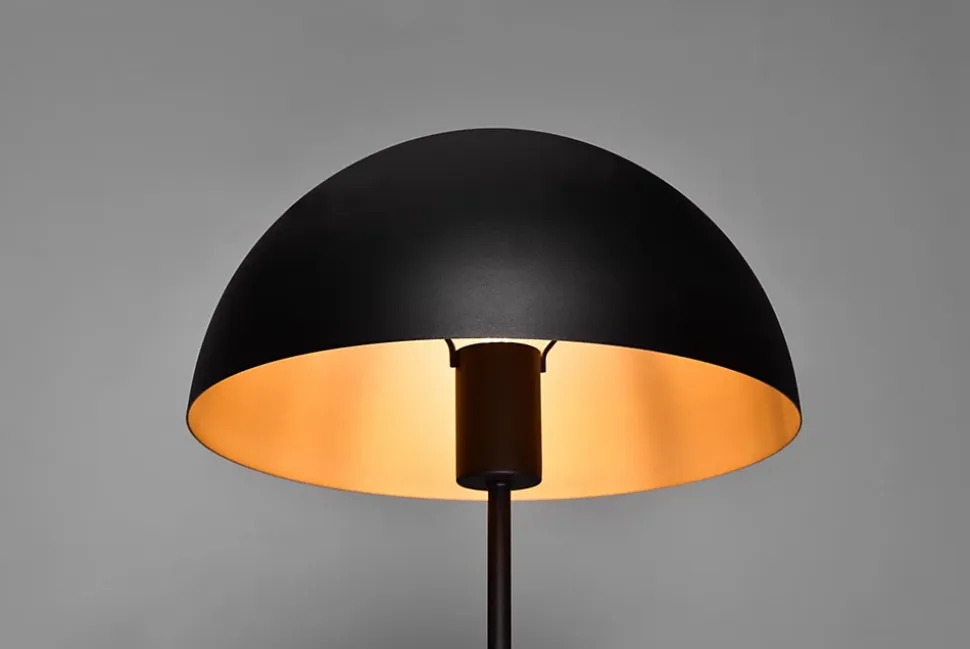 Les caractéristiques techniquesAvec son allure épurée inspirée du style classique, la lampe à poser NOLA de TRIO attire l’attention par son élégance intemporelle. Son design en forme de champignon apporte du caractère à votre décoration, qu’elle soit placée sur une table de chevet, une commode ou une console d’entrée.Le contraste raffiné entre le noir mat extérieur et l’intérieur doré ajoute une touche de chaleur et de sophistication à l’éclairage ambiant. L’allumage se fait facilement via un interrupteur à cordon intégré au câble.Fonctionnalités et avantagesCompatible avec une ampoule E27 de 40W max (non incluse), NOLA est parfaitement adaptée à l’utilisation d’une ampoule LED pour maximiser l’efficacité énergétique. En optant pour une source LED, vous bénéficiez d’un éclairage puissant et durable tout en réduisant vos consommations jusqu’à 80 % par rapport aux solutions halogènes classiques.Esthétique, fonctionnelle et respectueuse de l’environnement, la lampe NOLA combine style moderne et confort lumineux avec brio.