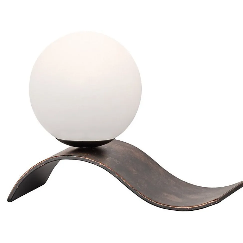 Les caractéristiques techniquesCette lampe de table est en métal laqué avec un globe en verre opalin.Elle fonctionne avec une ampoule E14, non fournie ce qui vous permet de choisir température de couleur et intensité lumineuse en fonction de vos goûts et besoins.Les avantages esthétiquesLa maison Trio a conçu cette lampe à poser au design sobre et épuré et aux finitions haut de gamme. Elle est constituée d’une base en métal sur laquelle est posée une sphére en verre opalin.Lara s’harmonise parfaitement avec une décoration moderne, contemporaine ou industrielle mais trouvera également sa place dans un intérieur plus classique ou ancien.Vous pourrez poser cette lampe sur une table basse ou une sellette dans votre salon ou l’utiliser en lampe de chevet. Lara existe en 3 versions : cuivre vieilli, noir et gris ancien