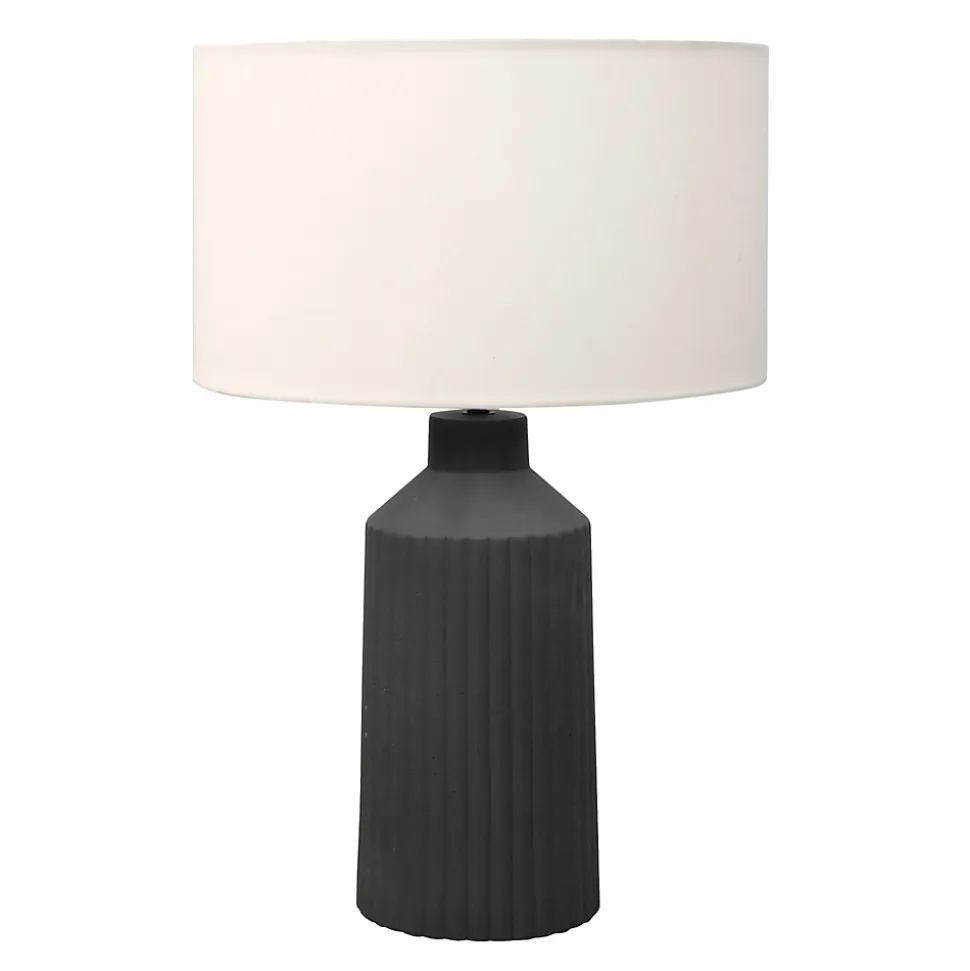 Lampe de table sans source lumineuse en céramique avec finition noire. Dispose d’une lumière, douille E27, tension 220-240 V, interrupteur à bascule et câble noir de 1,5 m de long. Ampoule non fournie. Dimensions : 53,5 cm de haut.