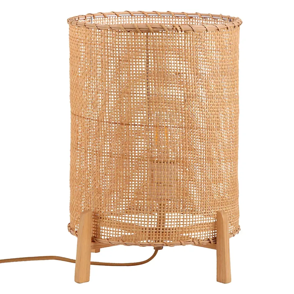 Lampe de table avec abat-jour en rotin naturel et base avec pieds en bois. Cette pièce a la capacité de transformer n’importe quel environnement en un espace confortable. Son abat-jour en fibres naturelles et sa base en bois dans des tons clairs, donneront une touche personnelle et simple à n’importe quelle pièce. Grâce à son ombre, la lumière est projetée de manière filtrée, apportant ainsi chaleur et une sensation de confort. WALA se combine avec tous les styles décoratifs et fonctionne avec une douille E27.