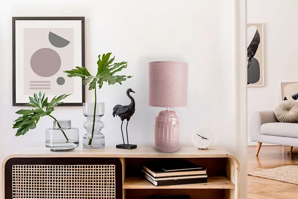 La lampe de table ERIDA de notre collection est un véritable accroche-regard pour chaque espace de vie. Les lampes de table sont légères et portables, ce qui permet leur utilisation flexible dans différentes zones de la maison. Elles offrent aussi bien une lumière ciblée pour des activités comme la lecture, le travail ou le bricolage, qu’une lumière d’ambiance pour mettre en valeur certaines zones de la pièce sans pour autant éclairer toute la pièce. De plus, ils servent d’éléments décoratifs qui peuvent souligner le style d’aménagement ou apporter des accents intéressants. Avec sa forme cylindrique et son design décoratif, cet article de style Jeune habitat attire l’attention de tous ceux qui aiment l’élégance. Le luminaire en céramique rose/rose attire immédiatement le regard. Le piètement laqué/lasuré s’harmonise avec l’abat-jour recouvert. Les dimensions de la lampe de table sont de 13,5 cm x 13,5 cm x 30 cm (longueur x largeur/profondeur x hauteur). La lampe a donc un diamètre de 13,5 cm. La lampe de table est dotée d’un interrupteur à cordon et d’une fiche plate européenne. Un câble de 120 cm de long assure une marge de manœuvre suffisante. Il est de couleur noire. Avec cette lampe de table, apportez une lumière élégante dans vos pièces à vivre. Équipée d’un culot G3, vous pouvez l’équiper à votre guise d’ampoules appropriées. Vous pouvez changer vous-même l’ampoule. Ce luminaire correspond à la classe 2. Une tension de réseau de 220-240V ~ 50Hz est nécessaire pour l’alimentation de cet appareil. Ce luminaire performant offre une puissance totale de 40 watts. Créez l’ambiance souhaitée avec notre lampe de table de haute qualité et donnez à votre maison un sentiment de confort et de style dans chaque pièce.