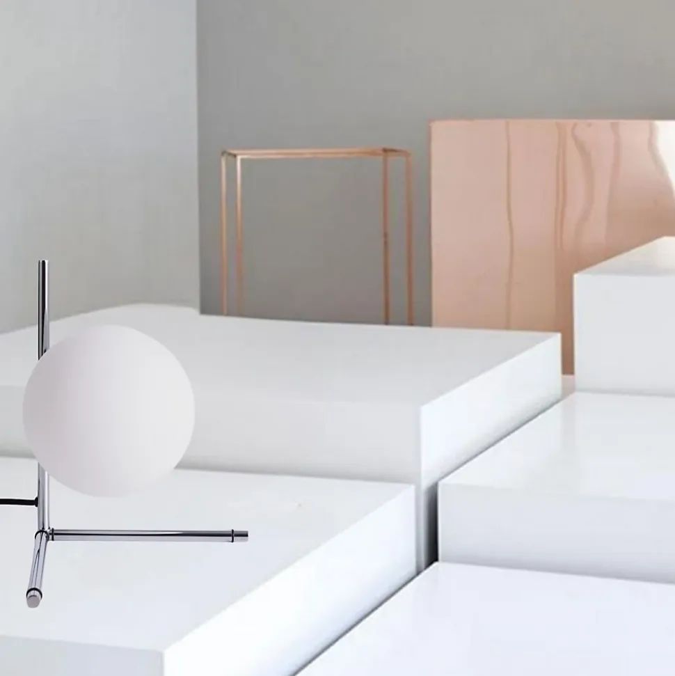 La lampe de table « Grecy » présente une sphère en verre opale et une structure en aluminium avec finition chromée ou dorée mate, avec un design minimaliste qui sadapte à différents styles décoratifs. Idéale pour les bureaux, les tables latérales ou les chambres, elle offre un éclairage brillant et diffus, créant une ambiance chaleureuse.Caractéristiques principales :Structure en aluminium avec finition chromée ou dorée mate.Écran sphérique en verre opale.Interrupteur sur le câble de 1260 mm de longueur.Douille pour ampoule E27 G45 (non incluse), puissance maximale de 40W.Caractéristiques techniques du produit :Matériau : Aluminium et verre de haute qualitéDouille : Compatible avec ampoule sphérique E27-G45 (non incluse)Structure : Finition dorée élégante ou chroméeIndice de protection : IP20, adapté pour une utilisation intérieurePuissance maximale : 40WTension nominale : 220-240V ACDimensions : 280 x 260 mmDiamètre de la sphère : 150 mmLongueur du câble : 1260 mm