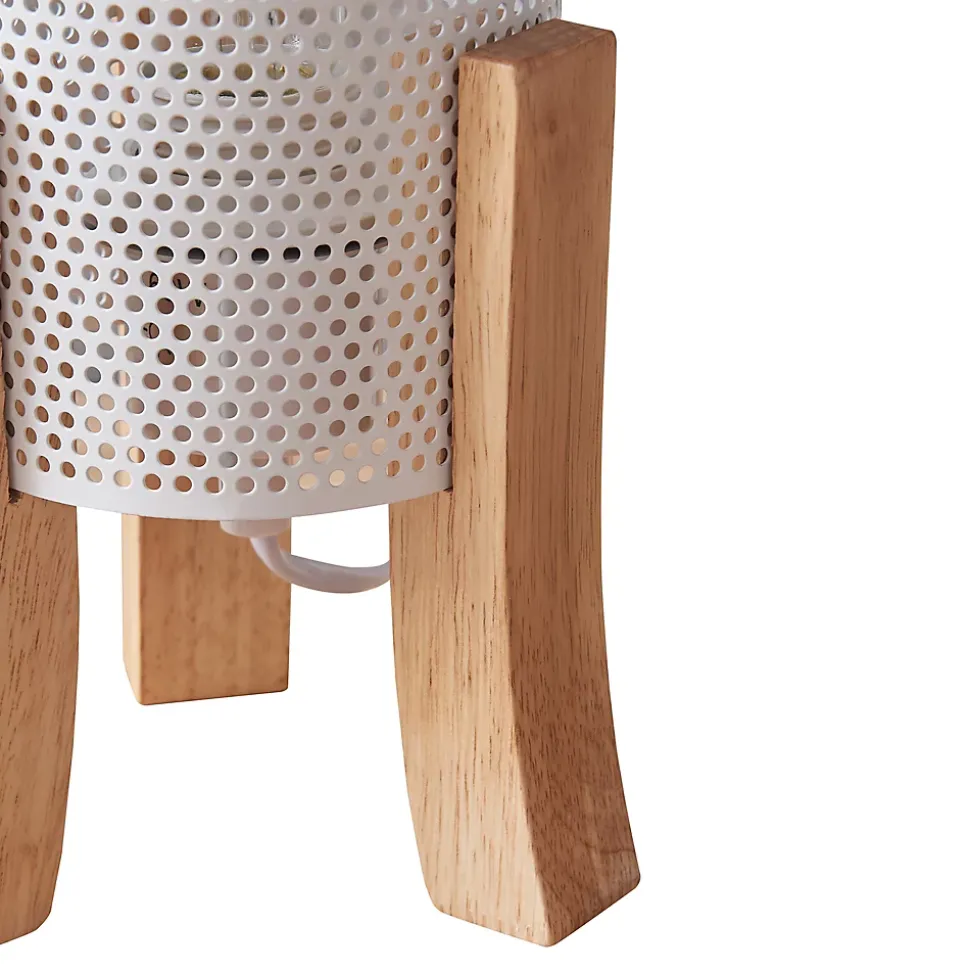 Lampe de tableLampe de table au design chic et intemporel, parfaite pour compléter tout espace de vie ou de travail.Elle trouve aisément sa place comme lampe de lecture sur votre table de nuit et dispose d’un câble suffisamment long qui vous offre des possibilités de positionnement flexibles. Vous pouvez ainsi éclairer votre chambre de manière optimale sans grand effort.La douille de ce modèle élégant est recouverte d‘un abat-jour décoratif, ce qui met encore davantage en valeur son apparence.Points forts du produit :- lampe moderne et stylée pour une ambiance chaleureuse- idéale comme source de lumière supplémentaire dans l’espace de vie- design exceptionnel et attrayant pour chaque maison- éclairage efficace grâce à l’abat-jour métallique à l’aspect maillé- long câble permettant un placement optimal- avec une douille pour ampoules adaptéesCaractéristiques techniques :- douille de lampe : 1 x E27, max. 60W (livré sans ampoule)- tension : 230V, 50Hz- type d’interrupteur : interrupteur intermédiaire à cordon- degré de protection : classe de protection IIDimensions :- totales (h x l x p) : 30 x 14 x 14 cm- abat-jour (h x Ø) : 22 x 11 cm- longueur du câble : 180 cmMatière :- structure : bois- abat-jour : métalCouleur :- structure : couleur bois- abat-jour : blancContenu de la livraison :1 x lampe de table (l’ampoule ne fait pas partie de l’offre)Produit de la marque :lux.pro