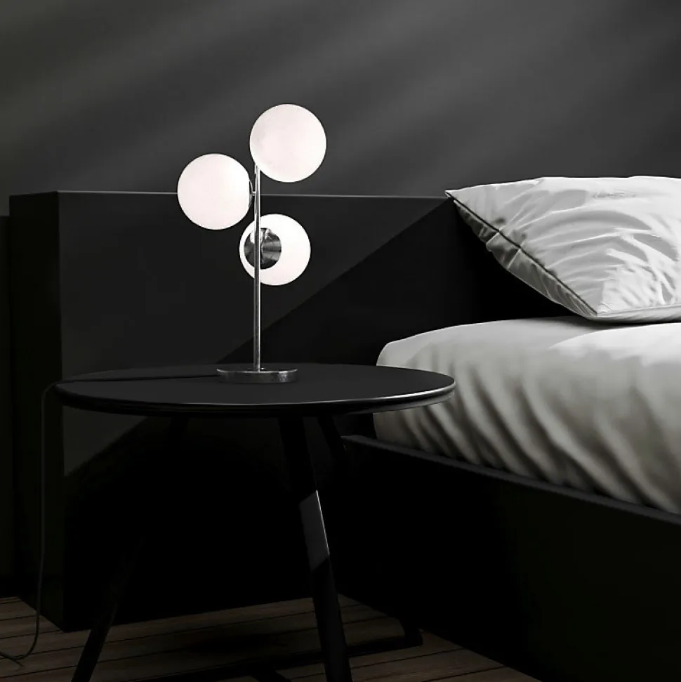 Lampe de Table en Métal avec Trois Boules en Verre Blanc « KAVALA » – 3*E27 Ø15cmLa lampe de table « KAVALA » associe élégance et modernité dans un design sophistiqué qui met en valeur n’importe quel espace. Sa structure métallique, disponible en finitions dorée ou argentée, et ses trois délicates sphères en verre opalin blanc offrent un éclairage chaleureux et uniforme, parfait pour décorer tout en éclairant fonctionnellement.Caractéristiques Principales :Style Polyvalent : Structure en métal avec finitions dorée ou argentée, s’adaptant à tout type de décoration, du classique au contemporain.Éclairage Triple Élégant : Trois abat-jours en verre opalin blanc de haute qualité pour une lumière douce et uniforme.Design Fonctionnel : Interrupteur intégré dans un câble de 1260 mm pour une utilisation pratique et confortable.Personnalisation de la Lumière : Compatible avec 3 ampoules E27 G45 jusqu’à 40W (non incluses), permettant de choisir l’intensité et la teinte de la lumière selon vos besoins.Dimensions et Applications :Avec une hauteur de 55 cm et un design compact, « KAVALA » est parfaite pour :Bureaux : Apportez du style et de la fonctionnalité à votre espace de travail.Tables d’appoint : Complétez la décoration de votre salon avec une touche moderne.Chambres à coucher : Idéale comme lampe de chevet pour créer une atmosphère chaleureuse.Remarque : Les ampoules ne sont pas incluses.Apportez une touche de sophistication et de luminosité à vos espaces avec la lampe de table « KAVALA », une pièce alliant design, fonctionnalité et style.