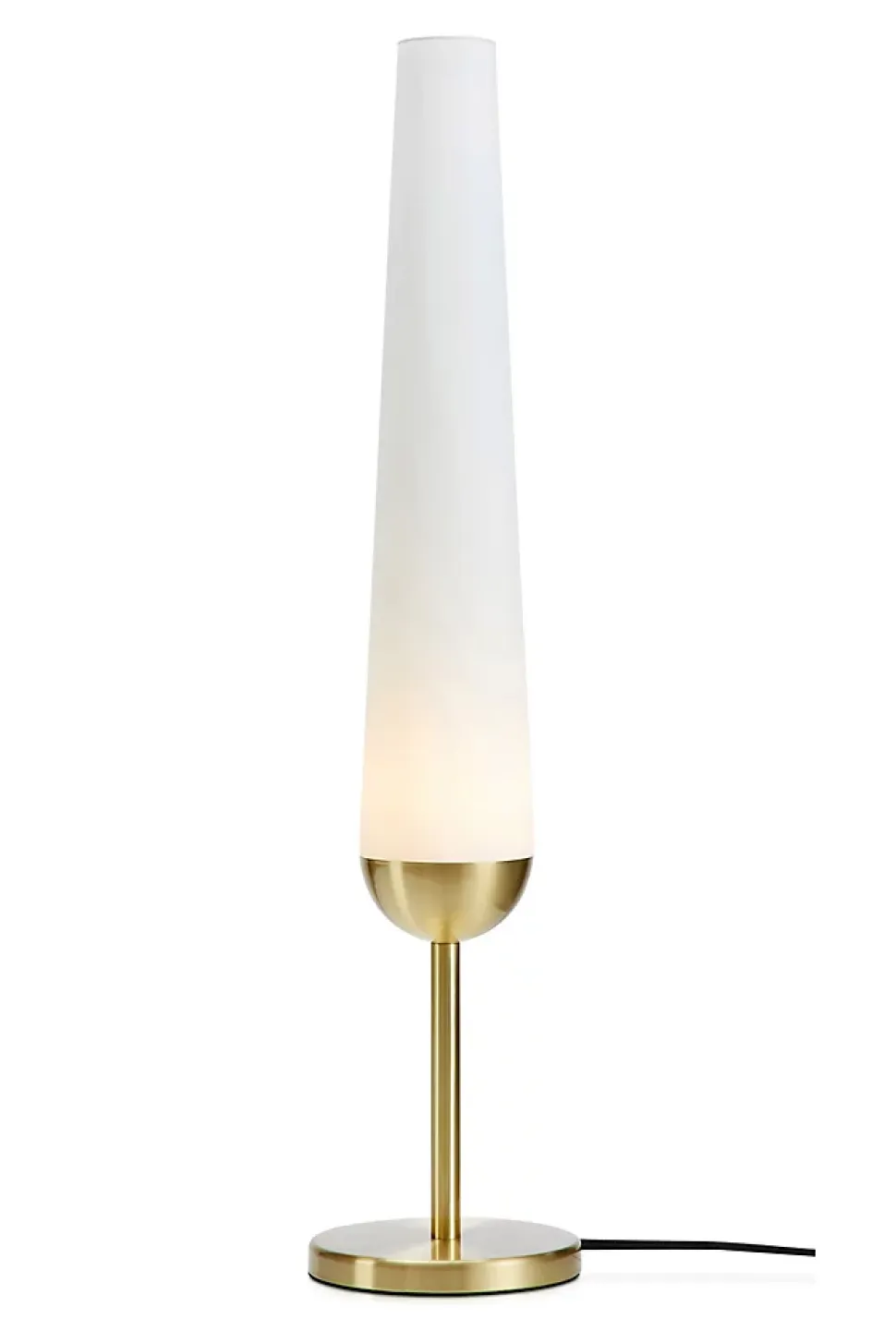 Les caractéristiques techniquesLa lampe de table Bern séduit par son style rétro inspiré des lampes à lave, modernisé par Joakim Thedin. Son pied en laiton brossé et son abat-jour en verre blanc diffusent une lumière douce et chaleureuse, parfaite pour une ambiance feutrée.Elle fonctionne avec une ampoule G9 de 20 W max ou LED équivalente (non incluse) et dispose d’un câble noir de 2 mètres avec interrupteur intégré. Classe II et indice de protection IP20.Les avantages esthétiques et pratiquesAvec son design élancé de 63 cm, Bern s’intègre facilement sur un buffet, une console ou un rebord de fenêtre. Sa silhouette élégante et minimaliste en fait une pièce décorative autant qu’un luminaire fonctionnel.