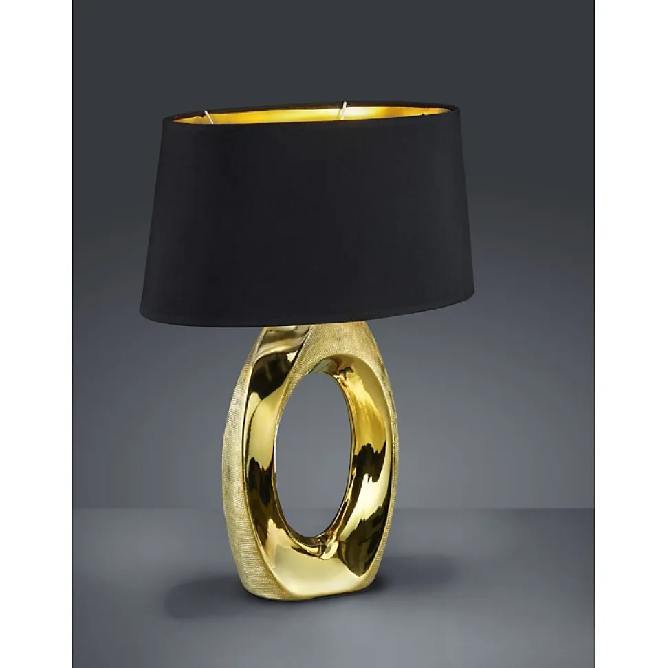 Les caractéristiques techniquesLa lampe de table Led Taba est constituée d’un pied en céramique dorée et d’un abat-jour en textile noir.Vous pourrez y adapter une ampoule Led culot E27 d’une puissance maximale de 60 watts pour le grand modèle ou une ampoule Led culot E14 pour le petit modèle. A vous de choisir son intensité et sa température de couleur afin de définir l’ambiance que vous souhaitez.Les avantages esthétiques La lampe à poser Taba de Trio a été conçue dans un esprit classique raffiné.Cette lampe Led a été pensée par les designers de la maison Trio dans un souci d’élégance.Son pied en céramique dorée et son abat-jour en textile noir intérieur doré donneront une touche chaleureuse à votre intérieur.Ce luminaire trouvera sa place dans votre salon ou salle à manger. Taba existe en deux versions : grand modèle – hauteur 52 cm – culot E27petit modèle – hauteur 33 cm – culot E14