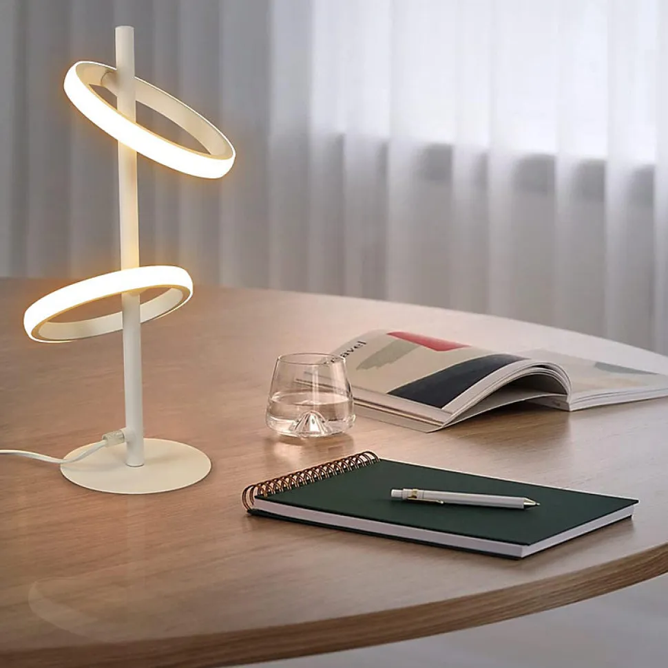 Design : Qu’elle soit utilisée comme élément décoratif sur un rebord de fenêtre, une table d’appoint ou comme source de lumière supplémentaire dans un coin lecture, cette lampe de table LED moderne offre une esthétique harmonieuse et un éclairage agréable. Tous les anneaux LED sont rotatifs et amovibles. Son design unique intègre un module LED fixe qui accentue l’agréable luminosité. D’une puissance de 13 watts, elle est durable et facile à nettoyer. Idéale pour le bureau, la salle à manger, la chambre, le salon, la chambre d’enfant, etc., elle convient à toutes les applications, qu’elle soit utilisée comme lampe de table, lampe de chevet, veilleuse ou lampe de bureau. La lampe de table LED a une plaque de 14 x 0,5 cm, une tension de 230 V et est fabriquée en fer et aluminium. Elle est équipée de deux anneaux LED de Ø 16 cm.