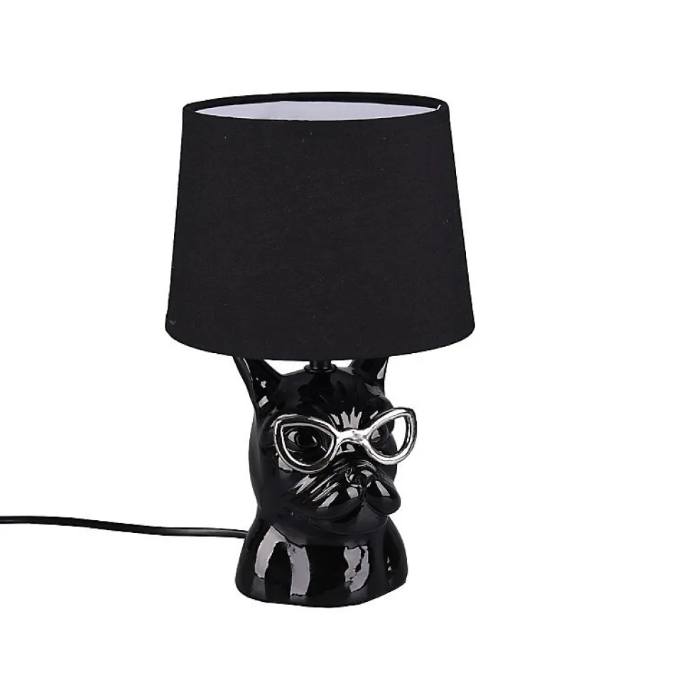 Les caractéristiques techniquesLa lampe de table Led Dosy est constituée d’un pied en céramique noir et d’un abat-jour en textile noir.Vous pourrez y adapter une ampoule Led culot E14 . A vous de choisir son intensité et sa température de couleur afin de définir l’ambiance que vous souhaitez.Les avantages esthétiques La lampe à poser Dosy de Trio a été conçue dans un esprit fun avec sa forme de tête de chien.Son pied en céramique noir et son abat-jour en textile noir donneront une touche chaleureuse à votre intérieur.Cette lampe Led a été pensée par les designers de la maison Trio dans un souci d’élégance.Ce luminaire trouvera sa place dans votre salon ou salle à manger.