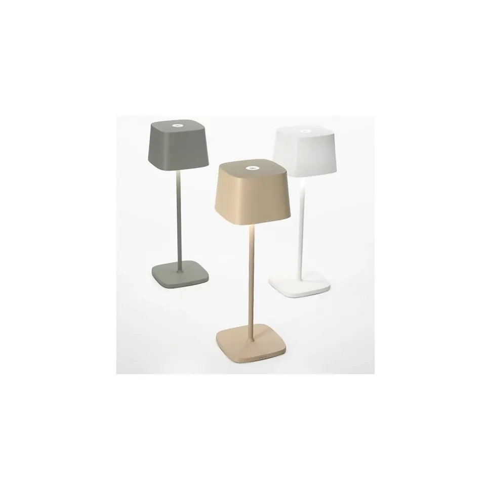 Lampe de table LED Ofelia Pro Corten rechargeable et à intensité variable avec batterie intégrée de 2,2 watts.Flux lumineux de 150 lumens. IRC>80. Lampe de table LED avec corps en aluminium peint couleur corten. La batterie d’Ofelia Pro dure environ 9 heures.Batterie rechargeable via la base de chargement par contact incluse dans l’emballage.La lampe de table Ofelia Pro LED est réalisée en aluminium avec un corps peint Corten, un diffuseur en polycarbonate satiné, où, sur le dessus du diffuseur, se trouve un bouton tactile pour allumer la lampe. Maintenir ce bouton tactile enfoncé permet de régler l’intensité lumineuse. Il conserve la mémoire du pas de gradation et, lors de la prochaine mise sous tension, l’intensité lumineuse correspondra à celle précédemment réglée.Ofelia Pro est une lampe de table LED idéale pour une utilisation dans les bars, restaurants et extérieurs, elle est également largement utilisée dans les maisons, les chambres, les salons et les bureaux professionnels. Lampe de table LED design, prix très compétitif.La couleur Corten est une couleur proche de la rouille, elle se marie très bien avec les environnements bois. La collection Ofelia Pro possède un indice de protection IP65 qui la rend adaptée aussi bien à un usage interne qu’externe.La couleur de la lumière d’Ofelia Pro est une lumière chaude à intensité variable (2200K – 2700K – 3000K).Ofelia Pro est une lampe de table LED de la marque AI LATI. Dimension : 10x10x29 cm de haut.Ofelia Pro est disponible en cinq couleurs que vous pouvez retrouver ICI