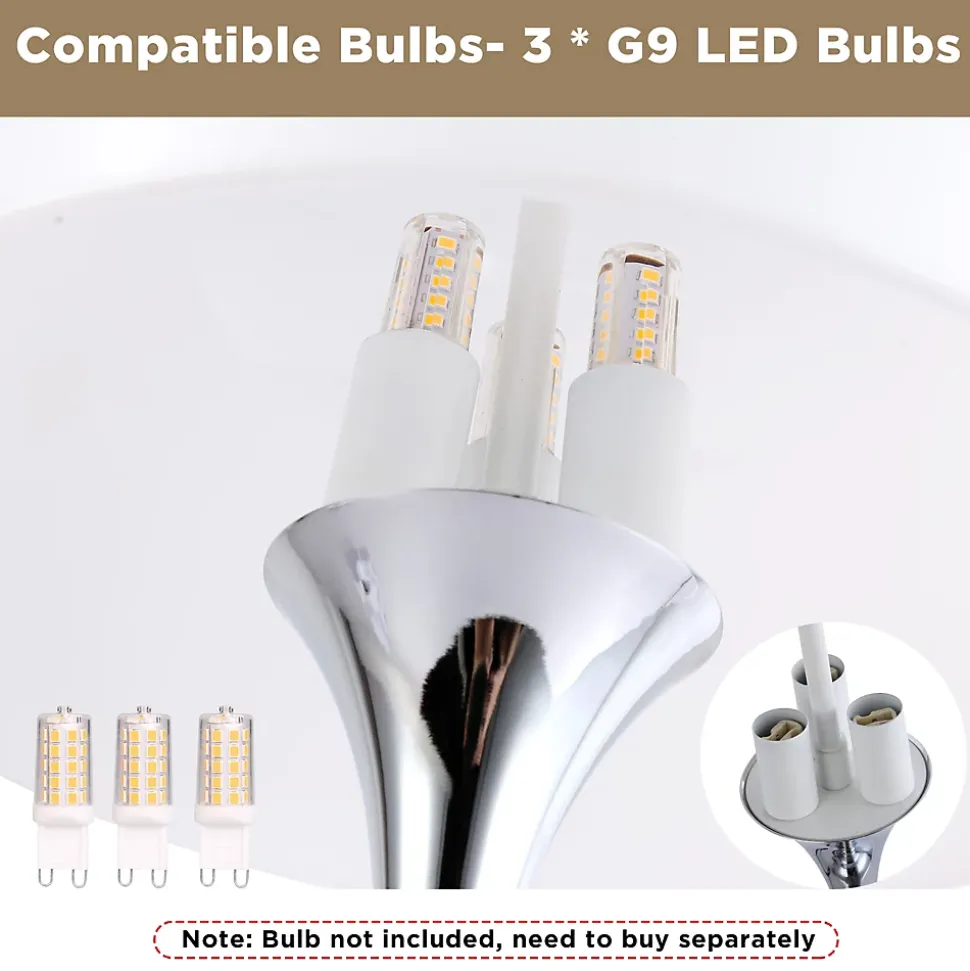 Lampe de table moderne « MEDUSA » avec 3 lumières, abat-jour et base métallique, idéale pour chambre, salon et bureau. G9*3Description:La lampe de table « MEDUSA » combine un design moderne et élégant avec une touche charmante en forme de champignon. Sa base métallique, peinte avec une finition métallique de haute qualité et en forme de trompette, améliore le reflet de la lumière, créant une ambiance chaleureuse et accueillante. L’abat-jour en acrylique blanc translucide diffuse une lumière douce et homogène sans éblouissement, idéale pour n’importe quel espace.Cette lampe polyvalente actualise votre chambre, salon, bureau ou toute autre zone commune avec sa forme organique et son éclat lumineux. Parfaite pour les bureaux, les tables d’appoint ou les tables de chevet, son design élégant n’offre pas seulement de l’éclairage mais aussi une touche décorative qui capte l’attention et crée une atmosphère chaleureuse.Caractéristiques principales :Design unique et attrayant : Base métallique conique en forme de trompette qui améliore le reflet de la lumière, et abat-jour en acrylique blanc translucide offrant un éclairage doux.Éclairage fonctionnel : Avec 3 supports de lampe G9 (non inclus) fournissant une lumière chaude et diffuse, idéale pour la lecture ou pour créer une ambiance.Taille idéale : Avec une hauteur totale de 38 cm, un diamètre d’abat-jour de 26 cm et une base de 16 cm, elle est parfaite pour les tables d’appoint, les bureaux ou les tables de chevet.Ampoules remplaçables : Compatible avec des ampoules LED G9 jusqu’à 40W, permettant de personnaliser l’intensité de la lumière (ampoules non incluses).Ajoutez une touche moderne, fonctionnelle et accueillante à votre maison avec la lampe de table « MEDUSA », une pièce unique qui combine style et polyvalence pour n’importe quelle pièce.