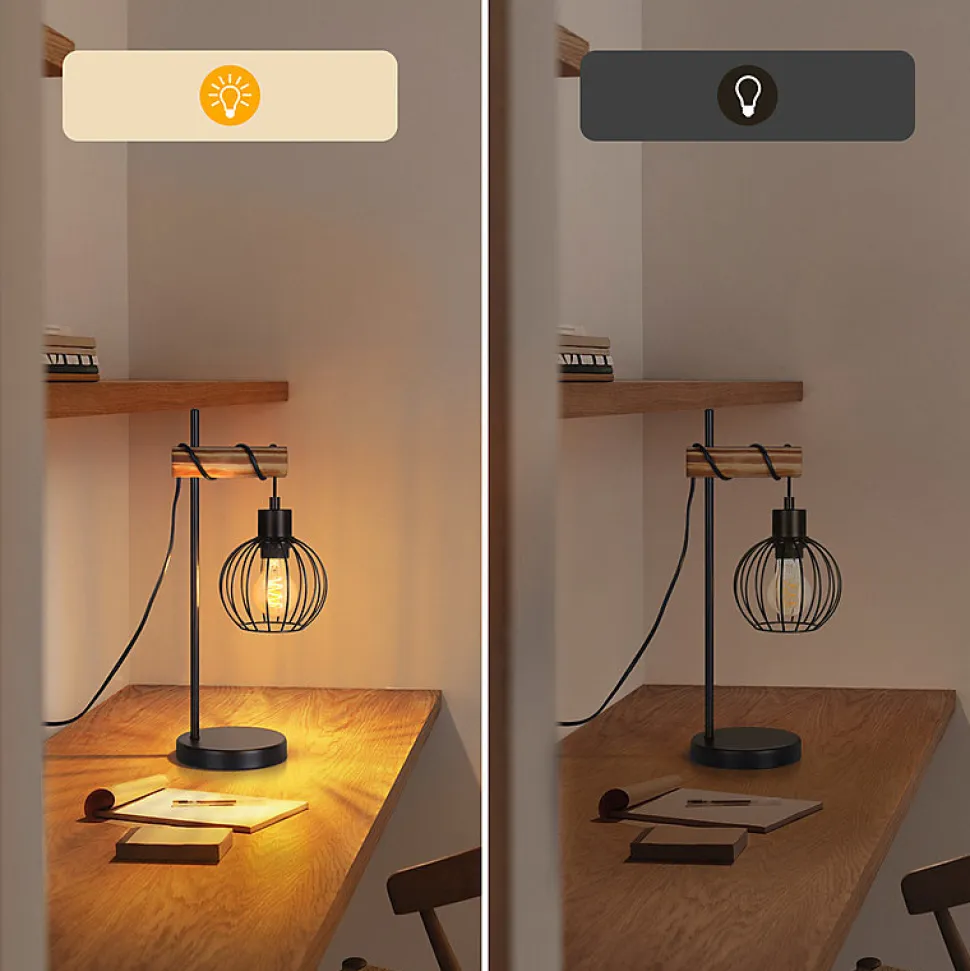 STYLE RÉTRO INDUSTRIEL CLASSIQUE : Cette lampe de table est fabriquée en bois massif sélectionné, traité à la flamme pour une texture de surface naturelle et unique, avec un abat-jour en métal noir qui souligne un style rétro industriel pur. La fusion d’éléments naturels et industriels sert à la fois d’éclairage et de décoration, ajoutant une texture unique à la pièce.COMPATIBLE AVEC LES SOURCES LUMINEUSES E27 : Cette lampe de table en bois est équipée d’une douille E27 standard, adaptée à une variété de sources lumineuses (jusqu’à 40 W), permettant de choisir une lumière chaude ou blanche selon l’ambiance. L’ampoule n’est pas incluse, vous permettant de choisir votre propre style d’éclairage.BASE ROBUSTE : Cette lampe de table noire est dotée d’une base en métal lestée pour assurer sa stabilité et l’empêcher de basculer facilement. Elle peut être placée sur diverses surfaces planes telles que bureaux, tables de chevet, tables d’appoint, etc., garantissant une plus grande sécurité au quotidien.FACILE À UTILISER : Dimensions : Base de la lampe : 15 x 2,5 cm ; Abat-jour : 14 x 14,7 cm ; Hauteur : 46 cm. Cette lampe de chevet est livrée avec un cordon d’alimentation et un interrupteur ; il suffit de la brancher et de l’utiliser. Facile à installer et à allumer, elle convient à tous les utilisateurs, simple et efficace.UTILISATIONS MULTIPLES : Lampe de chevet dans la chambre, lampe de lecture dans le bureau ou lampe décorative dans le salon, cette lampe de table s’intègre facilement à différents styles d’intérieur et crée une atmosphère chaleureuse et conviviale.