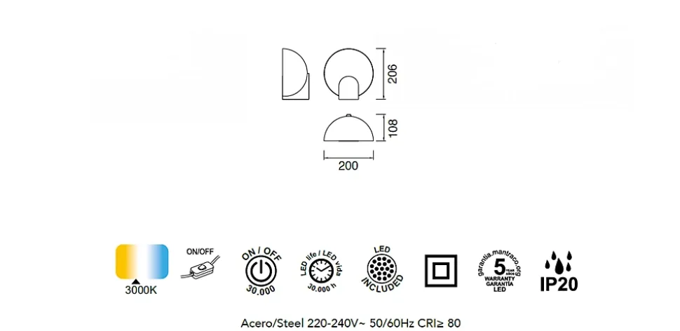 Lampe de Table OCULO – Caractéristiques TechniquesLa lampe de table OCULO présente un design élégant et fonctionnel, disponible en versions noir ou or. Dotée d’une LED intégrée de 5W avec une température de couleur de 3000K et une luminosité de 400 lumens, elle offre un éclairage chaleureux pour diverses ambiances. La durée de vie de la LED est estimée à 30000 heures, tandis que la garantie pour cette composante est de 5 ans.Certifiée IP20, cette lampe assure une protection contre la poussière, et sa construction garantit une durabilité appréciable. La lampe elle-même est couverte par une garantie de 2 ans. Offrant une combinaison optimale de style contemporain et de performances lumineuses durables, la lampe de table OCULO s’intègre harmonieusement à tout intérieur, alliant élégance et fonctionnalité.