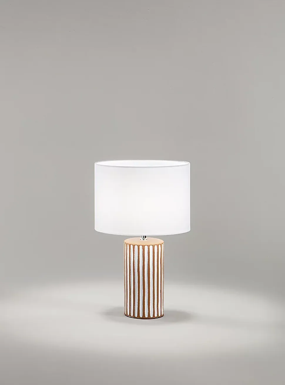 La lampe de table Tribale associe une base artisanale en céramique marron à un abat-jour en tissu brut, créant un design raffiné et accueillant. Parfait pour la chambre, le salon, la table de chevet ou le bureau, il s’intègre harmonieusement à tout style d’ameublement, du bohème au contemporain.L’abat-jour en tissu diffuse la lumière uniformément et délicatement, réduisant l’éblouissement et créant un environnement relaxant, idéal pour la lecture ou un éclairage d’ambiance.Grâce à son design compact, vous pourrez facilement le placer n’importe où sans prendre trop de place. L’interrupteur marche/arrêt sur le câble permet une utilisation pratique dans toutes les situations.Le montage est très simple : il suffit d’insérer une ampoule avec une douille E27 (MAX 60W) et de la connecter à la douille. Fonctionne avec des ampoules LED ou à incandescence