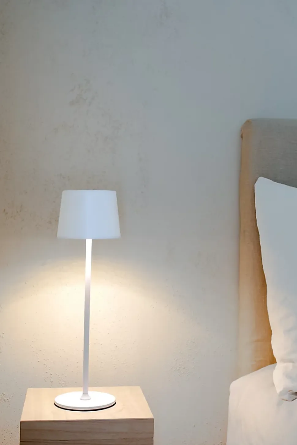 Design épuré et performance sans fil pour vos soirées en plein airLa lampe de table Fiore de Markslöjd en finition blanc mat se distingue par son élégance minimaliste et sa praticité. Compacte et légère, elle se transporte facilement pour éclairer tous vos espaces extérieurs avec style et simplicité.Fonctionnant sur batterie, elle offre jusqu’à 8 heures d’autonomie sans fil, parfaite pour les dîners d’été, les moments de détente en terrasse ou comme lampe d’appoint à l’intérieur.Confort d’utilisation et éclairage douxSon variateur tactile situé sur le haut de l’abat-jour permet d’ajuster la lumière à votre convenance. Grâce à sa LED fixe de 2 W, elle diffuse une lumière blanche chaude (3000 K) douce et agréable, idéale pour créer une ambiance chaleureuse.Sa certification IP44 assure une protection contre les éclaboussures, la rendant adaptée à une utilisation temporaire en extérieur. Recharge simple via un câble USB-C fourni (adaptateur non inclus).Fiabilité signée MarkslöjdQualité et durabilité sont au rendez-vous avec une garantie de 2 ans sur la lampe, et 5 ans sur la LED. Un choix sûr pour un éclairage design, moderne et nomade.