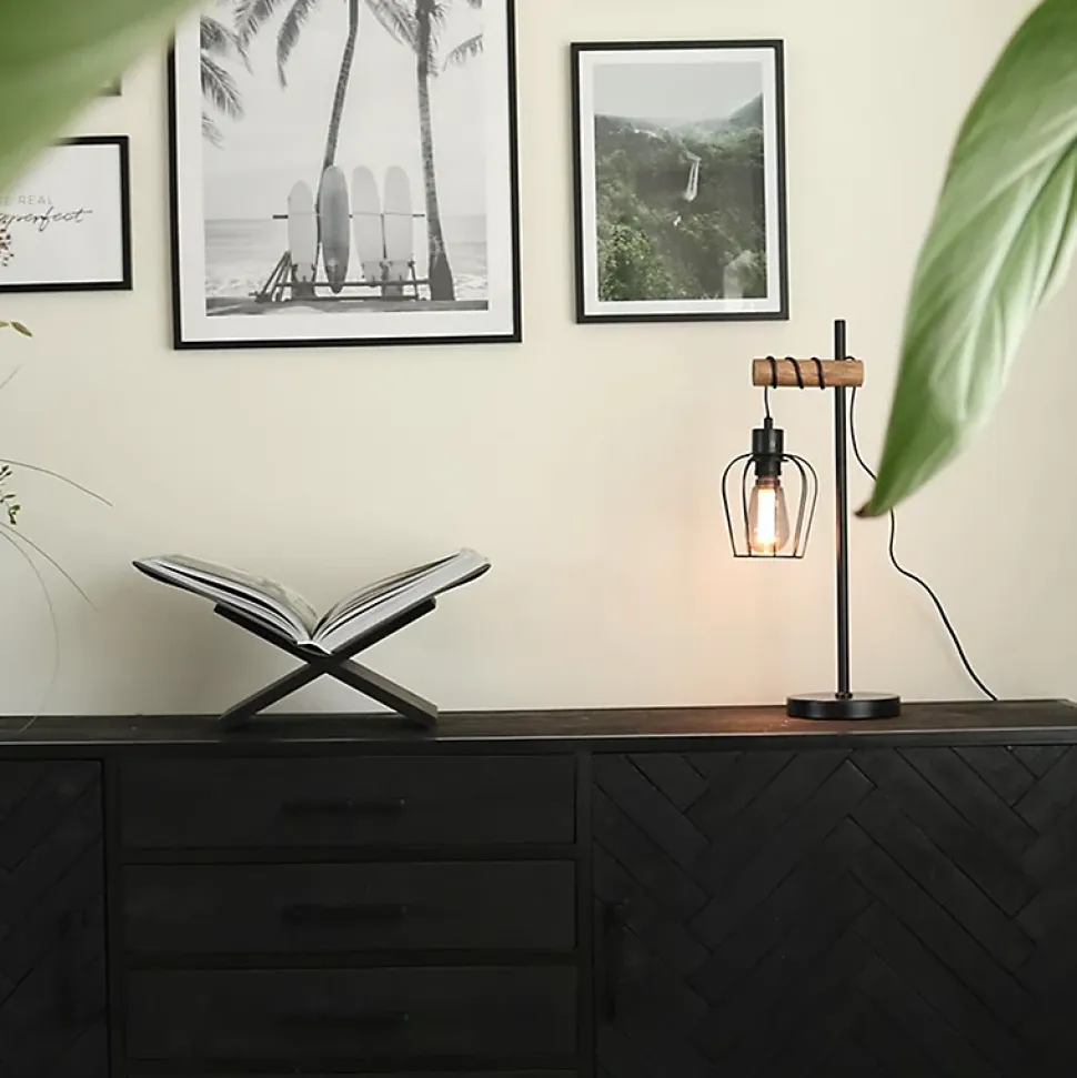 Vous recherchez une lampe de table d’ambiance ? Stronk est exactement ce qu’il vous faut ! Un luminaire à la fois mignon et rustique. La lampe de table est en bois et en acier, l’acier étant fini en noir. Elle mesure 55,4 cm de haut, 13,8 cm de long et 13,8 cm de large. La plaque de montage a un diamètre de 16 cm et une hauteur de 2,5 cm. L’abat-jour en acier a un diamètre de 13,8 cm et une hauteur de 14 cm. Stronk est livrée avec un cordon et une prise de 180 cm. Vous pouvez compléter la lampe de table avec une ampoule à culot E27 (60 W maximum). N’oubliez pas de la commander séparément. Stronk est compatible avec un variateur externe (non inclus). Créez une ambiance chaleureuse dans votre maison avec la lampe de table rustique Stronk.
