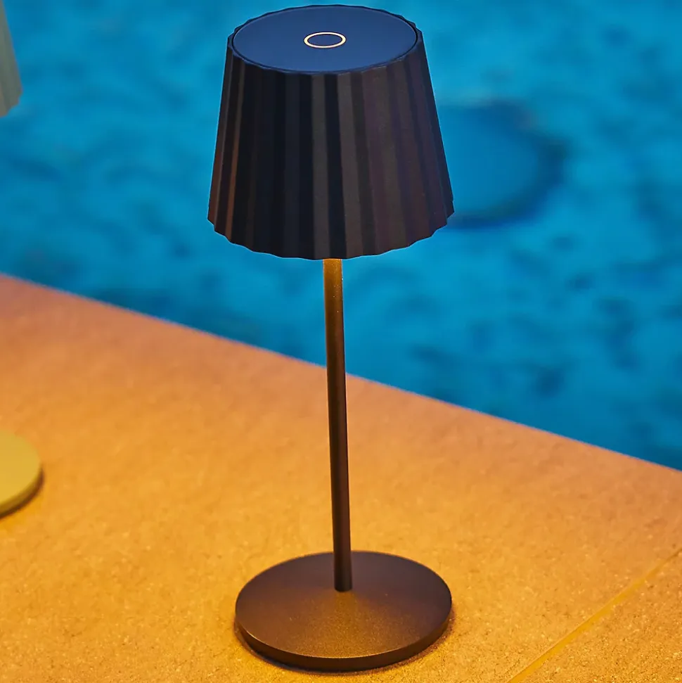 La lampe de table LED sans fil Abby Black se distingue par son design fin et élégant dans un coloris noir moderne qui apporte une touche chic à votre décoration. Fabriquée en aluminium, cette lampe à poser autonome possède un abat-jour de 13, 5 cm de diamètre et une hauteur totale de 30 cm. Elle est idéale comme lampe de table design, lampe de chevet ou pour illuminer vos tables de fêtes, en intérieur comme en extérieur. Grâce à sa batterie rechargeable via le câble USB de Type C fourni, elle offre une autonomie allant jusqu’à 8 heures après une charge complète de 3 heures. Son éclairage blanc chaud dispose d’un variateur d’intensité réglable sur 4 positions, vous permettant d’adapter le flux lumineux de 183 lumens selon l’ambiance souhaitée. Certifiée IP54, elle est protégée contre les éclaboussures et les poussières, garantissant une utilisation sereine sur une terrasse, un balcon ou au jardin avec une structure robuste et raffinée.