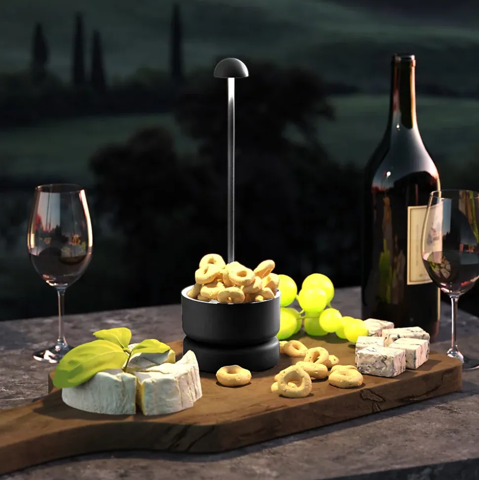 Imaginée par le designer italien Franco Pagliarini, la lampe LED sans fil BASKET BLACK se distingue par son design atypique incluant 1 bol en aluminium noir. Ce contenant intégré permet de déposer des fleurs ou des accessoires pour surprendre vos convives. Compacte avec 1 hauteur de 31 cm et 1 diamètre de 10 cm, elle diffuse 1 lumière blanc chaud entre 2700K et 3000K réglable de 5% à 100% par 1 interrupteur tactile. Son flux lumineux de 185 lumens crée 1 ambiance conviviale. Sa batterie performante offre 1 autonomie de 16 heures après 3 heures de charge sur sa base incluse. Certifiée IP65, elle résiste aux intempéries et aux UV pour 1 usage sur terrasse ou en intérieur. Sa finition en peinture poudrée noire garantit 1 solidité optimale. Ce luminaire conjugue chic et performance technique définie par sa conception.