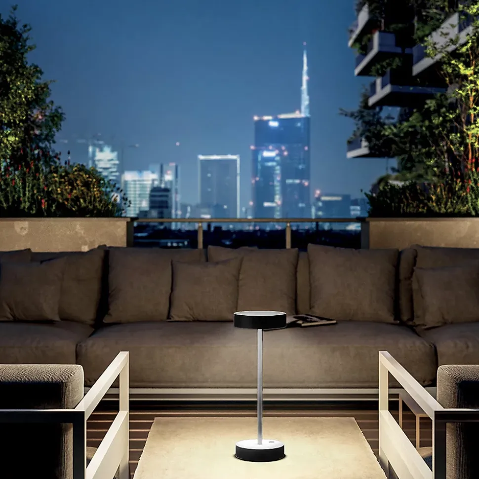 La lampe de table LED sans fil Sandy Black se distingue par son design fin et son coloris noir mat moderne qui apporte une touche de sobriété élégante à votre décoration. Conçue en aluminium, cette lampe à poser autonome possède un abat-jour délicat et une hauteur totale de 30 cm pour une largeur de 11 cm. Elle est idéale comme lampe de table design, lampe de chevet ou pour illuminer vos tables de fêtes en intérieur comme en extérieur. Grâce à sa batterie rechargeable, elle offre une autonomie allant jusqu’à 8 heures après une charge complète de 3 heures sur sa base de chargement fournie. Son éclairage blanc chaud dispose d’un variateur d’intensité réglable sur 4 positions, vous permettant d’adapter le flux lumineux de 183 lumens selon l’ambiance souhaitée. Certifiée IP54, la Sandy Black est protégée contre les éclaboussures et les poussières, garantissant une utilisation sécurisée et durable sur une terrasse, un balcon ou au jardin.