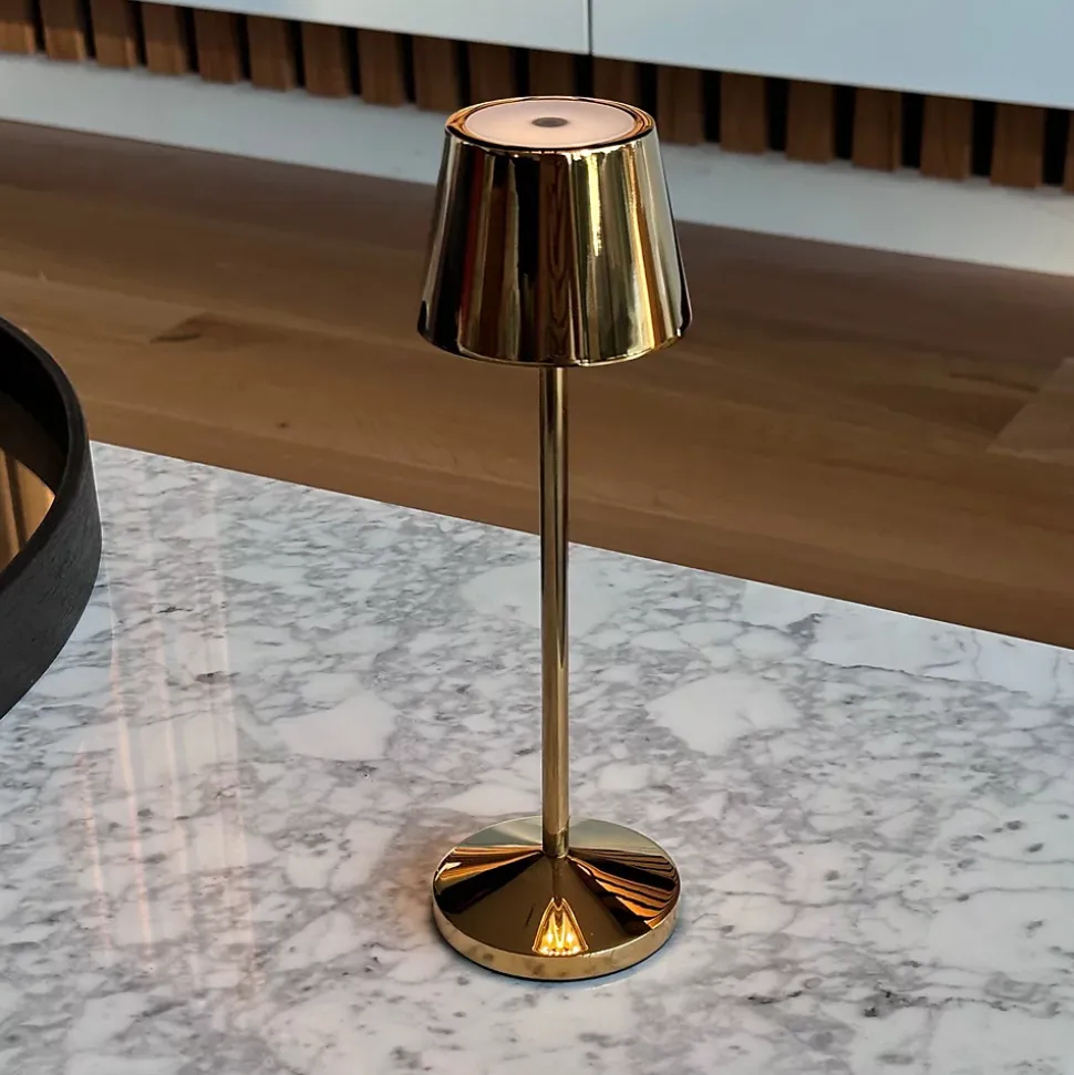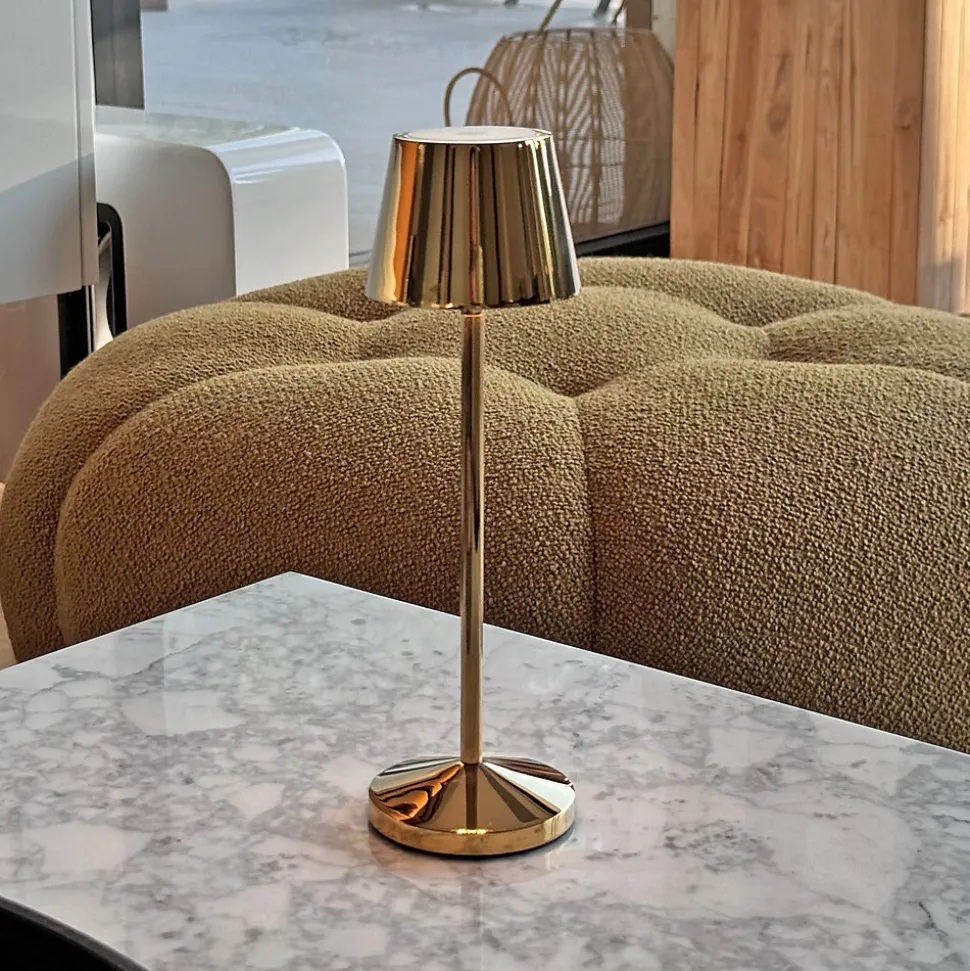 La lampe de table sans fil Emily est une solution portable et élégante qui s’adapte parfaitement à votre quotidien. Son corps en aluminium doré robuste et sa technologie LED de 130 lumens offrent un équilibre idéal entre esthétisme et durabilité. Équipée d’une commande tactile, elle permet d’ajuster l’intensité lumineuse et mémorise votre réglage préféré pour chaque utilisation. Son format compact (25 cm de hauteur) et son fonctionnement sur batterie, avec une base de recharge sans contact, garantissent une liberté totale sans contrainte de câbles. Certifiée IP65, elle brave sereinement les éclaboussures pour illuminer vos jardins, terrasses ou salons. Une charge rapide de 5 heures suffit pour profiter d’un éclairage blanc chaud (3000K) de haute qualité. Pratique et maniable, la lampe Emily dorée sublime vos espaces intérieurs et extérieurs tout au long de l’année avec une touche chic, luxueuse et fonctionnelle.
