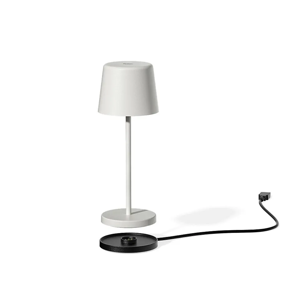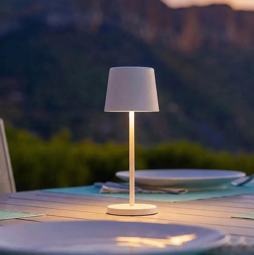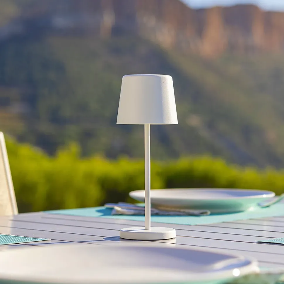 La mini lampe de table LED sans fil Kelly Mini White offre un design blanc épuré et une luminosité moderne dans un format compact de 22 cm de hauteur pour 8, 2 cm de largeur. Sa structure en aluminium blanc apporte une touche de fraicheur et d’elegance a votre décoration que ce soit sur une table de chevet ou un buffet de jardin. Autonome et performante elle dispose d’une batterie offrant jusqu a 7 heures d’autonomie rechargeable rapidement en 2 heures sur sa base de chargement sans fil incluse. Le variateur d’intensite blanc chaud vous permet de personnaliser le flux lumineux de 186 lumens pour créer l’atmosphère idéale selon le moment de la journee. Grace a sa certification IP54 elle est protegee contre les éclaboussures et resiste aux UV garantissant une utilisation sereine en extérieur comme en intérieur avec une technologie sans fil discrete.