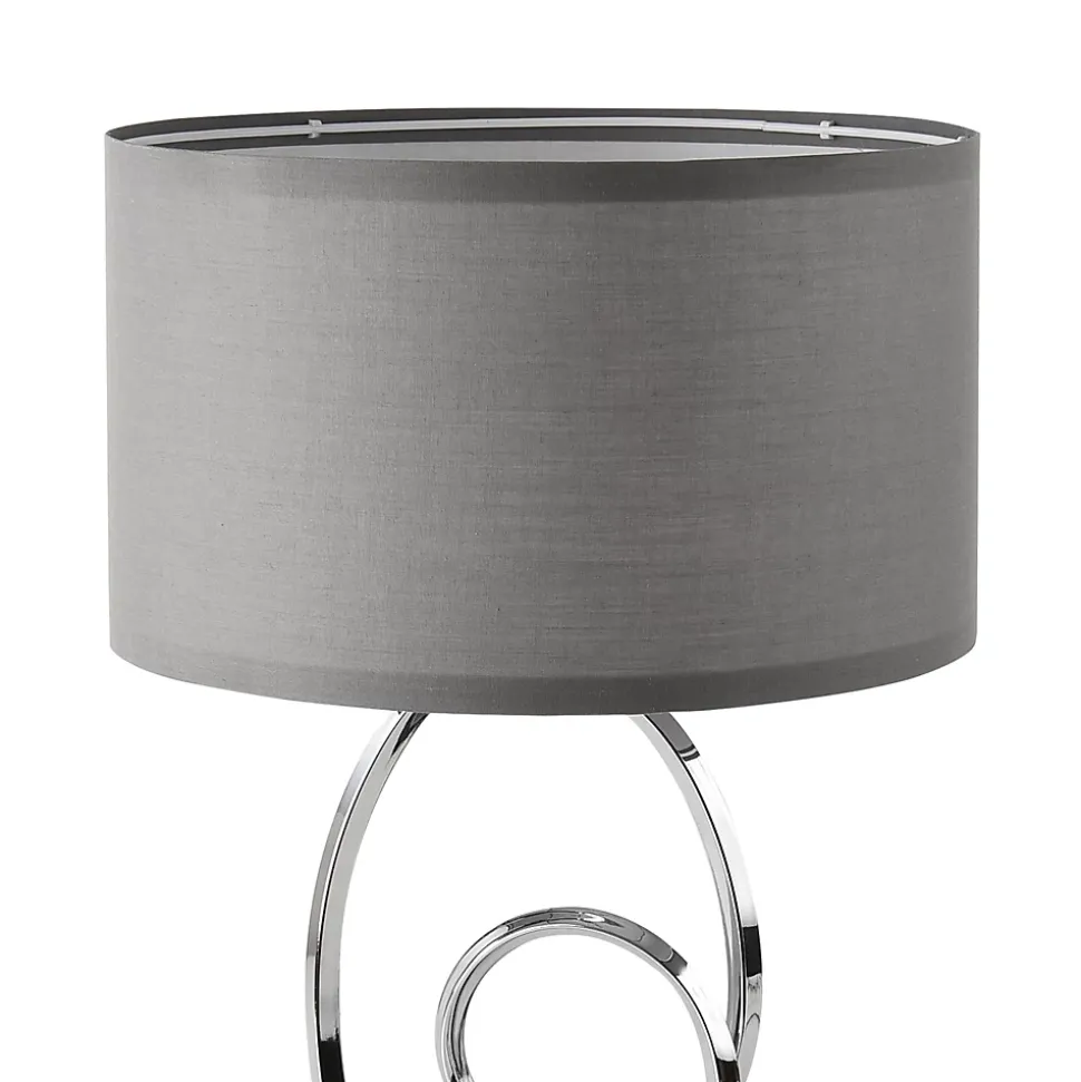 Lampe de tableNotre lampe de bureau au style unique et intemporel complétera parfaitement le décor de votre salon, chambre ou bureau. Elle apportera une ambiance chaleureuse à votre intérieur et s’adaptera facilement à tous les styles d’intérieur.Description :- lampe de table moderne et sophistiqué- idéale pour toutes pièces de la maison- design unique et attrayant- avec une douille de lampeCaractéristiques techniques :- Douille : 1 x E14, max. 40W (livraison sans ampoule)- Alimentation : 230V, 50Hz- interrupteur à cordonMatière :- structure : métal- abat-jour : tissu (100 % polyester)Dimensions :- hauteur : 49,5 cm- abat-jour (diamètre x hauteur) : 30 x 18 cm- pied (diamètre x hauteur) : 12 x 2,5 cm- longueur du câble : 150 cmCouleur :- structure : chrome- abat-jour : grisContenu de la livraison :1 x lampe de table (l’ampoule ne fait pas partie de l’offre)Produit de la marque :lux.pro