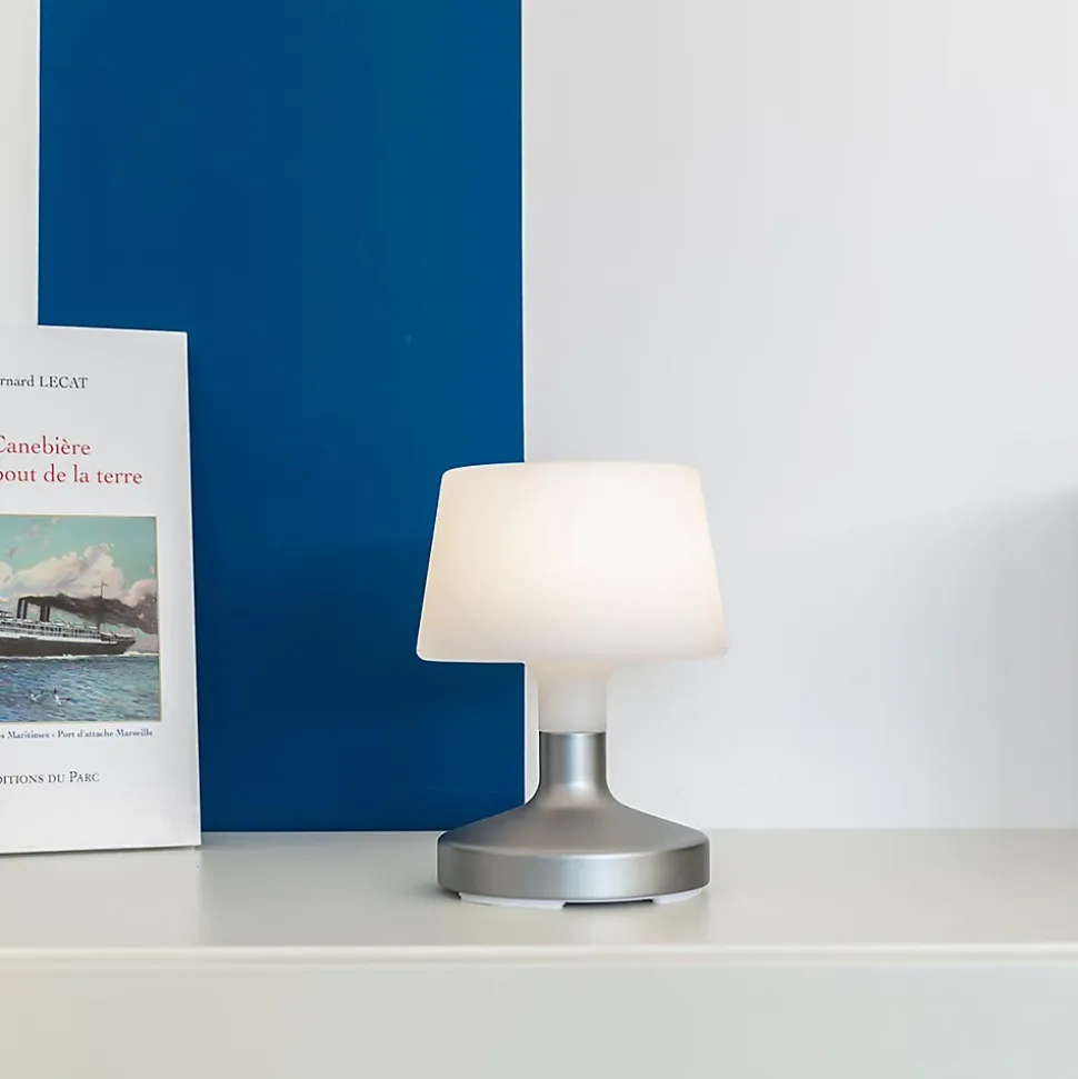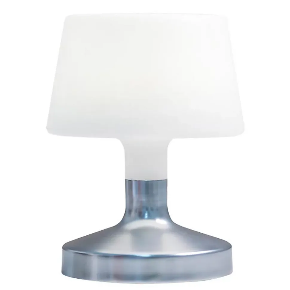 La lampe de table LED sans fil Helen Silver est un luminaire contemporain doté d’un pied tactile en acier argenté. Cette lampe nomade propose un éclairage dual blanc chaud et blanc froid pour adapter l’ambiance. Grâce à son variateur d’intensité tactile, gérez précisément le flux lumineux de plus de 100 lumens. Sa batterie rechargeable offre une autonomie de 8 heures après un temps de charge complet de 4 à 6 heures par câble USB. L’abat-jour en polyéthylène associé à une hauteur totale de 21 cm assure une diffusion optimale. Certifiée IP44, elle résiste aux éclaboussures et aux rayons UV pour un usage sur terrasse ou en salon. Son entretien est facilité avec un nettoyage à l’eau tiède. Son style intemporel s’accorde aussi bien avec une décoration moderne qu’avec un esprit plus bohème ou industriel. Elle constitue aussi une excellente idée pour personnaliser une chambre, un salon ou un coin lecture avec une.