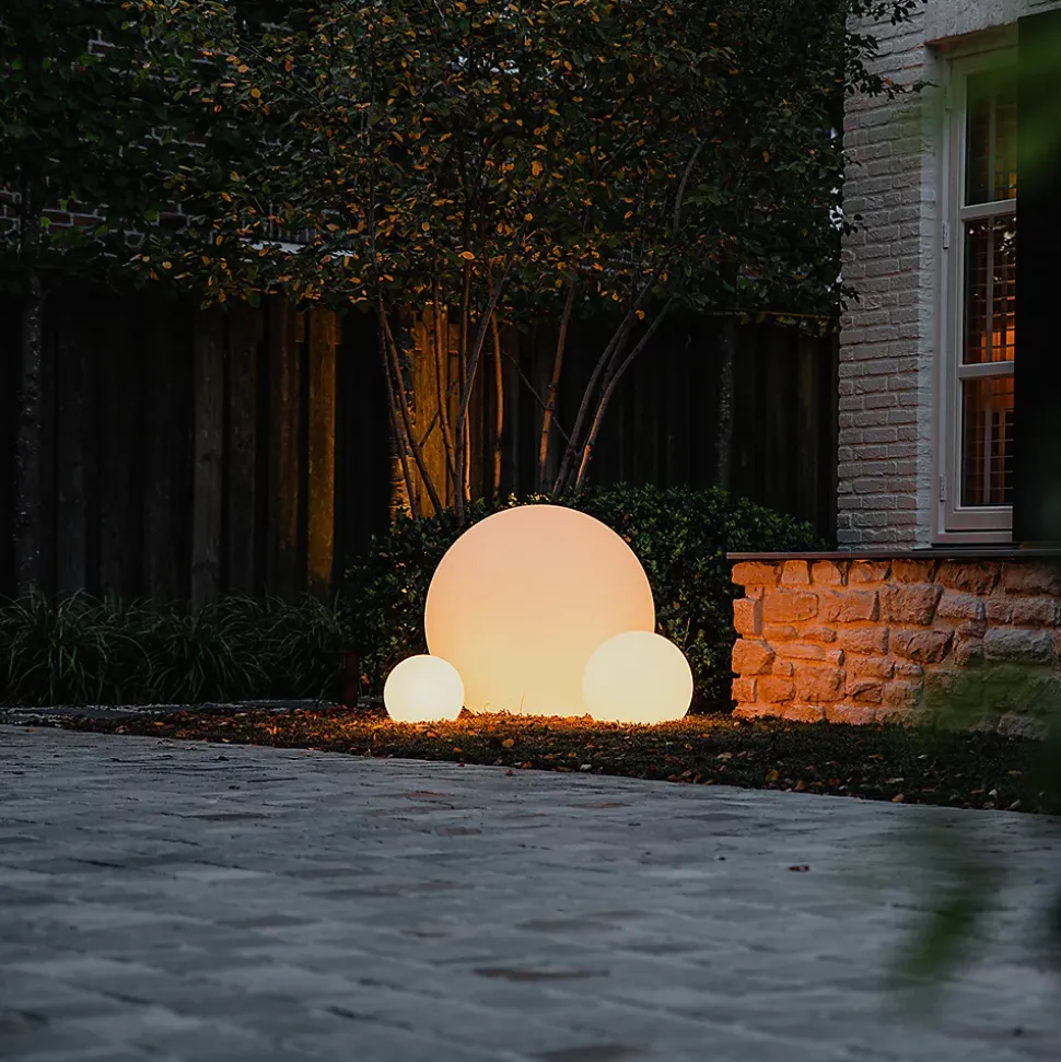 La lampe d’extérieur Nura est l’un de nos best-sellers, et on comprend pourquoi ! Son choix de matériau, le plastique blanc, en fait une lampe vraiment moderne. Nura peut non seulement être suspendue, mais aussi placée au sol. La lampe a un diamètre de 77 cm et une hauteur de 96,7 cm. N’oubliez pas de commander séparément une ampoule avec un culot E27. Celle-ci n’est pas incluse. Avec sa valeur IP65 élevée, elle est résistante à la pluie et parfaite pour le jardin. L’article est livré avec un cordon et une prise. Le cordon mesure 200 cm de long. Cette lampe d’extérieur sur pied est dimmable, mais un variateur d’intensité n’est pas inclus. Ne restez plus dans le noir et optez pour Nura.