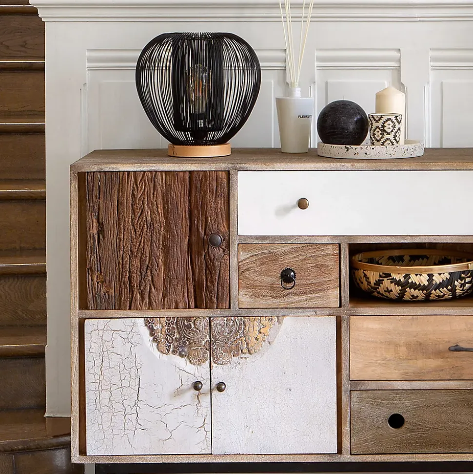 Vous êtes à la recherche d’une lampe design pour décorer votre intérieur avec style ? La lampe filaire « Noda » Atmosphera devrait répondre à vos attentes. Une lampe moderne et tendance Composé d’un socle en bois de hêtre et d’une structure en fer, ce luminaire se mariera avec bon nombre d’intérieurs tant il est dans la tendance actuelle. Un éclairage agréable La conception filaire de la lampe à poser « Noda » lui confère une allure élégante et contemporaine. Mais ce n’est pas tout : elle permet également de vous offrir une intensité lumineuse suffisante sans que vous ne soyez ébloui par une lumière directe. Placez votre lampe « Noda » sur une commode Atmosphera au style ethnique et voyagez tout en restant chez vous. Le petit plus déco Ajoutez d’autres luminaires ou des bougeoirs assortis de tailles différentes pour jouer sur l’accumulation de façon organisée et décorative.