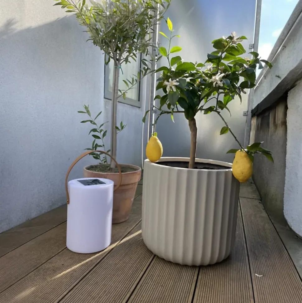 Notre lampe Lucia convient aussi bien à l’intérieur qu’à l’extérieur. Facile à transporter, elle diffuse une lumière agréable lors des douces soirées de printemps ou d’été. La lampe Lucia est fournie avec un chargeur et des cellules solaires.Le matériau est traité anti-UV, ce qui empêche la décoloration de la lampe LED par la lumière du soleil. Elle résiste à des températures allant de -14 °C à +35 °C.Se recharge en 6 à 8 heures par USB ou en plein soleil.Sans fil, elle est facile à emporter et offre une autonomie de 6 à 8 heures après une charge complète (selon la luminosité).Une télécommande permet de régler la luminosité et d’allumer/éteindre la lampe (en option).Certifiée IP44, la lampe est résistante aux insectes et aux particules solides jusqu’à 1 mm, ainsi qu’aux fortes projections d’eau de toutes parts. Elle est donc idéale pour une utilisation en extérieur et dans les pièces humides, comme une salle de bain. Cependant, elle n’est pas conçue pour être utilisée dans une baignoire ou un bain d’oiseaux.Vous pouvez également l’utiliser comme éclairage intérieur ou pour créer une ambiance chaleureuse à table.Spécifications :-Réf. : 23103-Hauteur : 23 cm-Indice de protection : IP44 (résistant à la pluie fine)-Température de couleur : 2800-3200 K-Diamètre : 16 cm-Source lumineuse : LED-Autonomie : 12 h-Puissance : 2 W / 5 V-Télécommande : Oui (vendue séparément)-Temps de charge : 6 h-Alimentation : Secteur et panneau solaire
