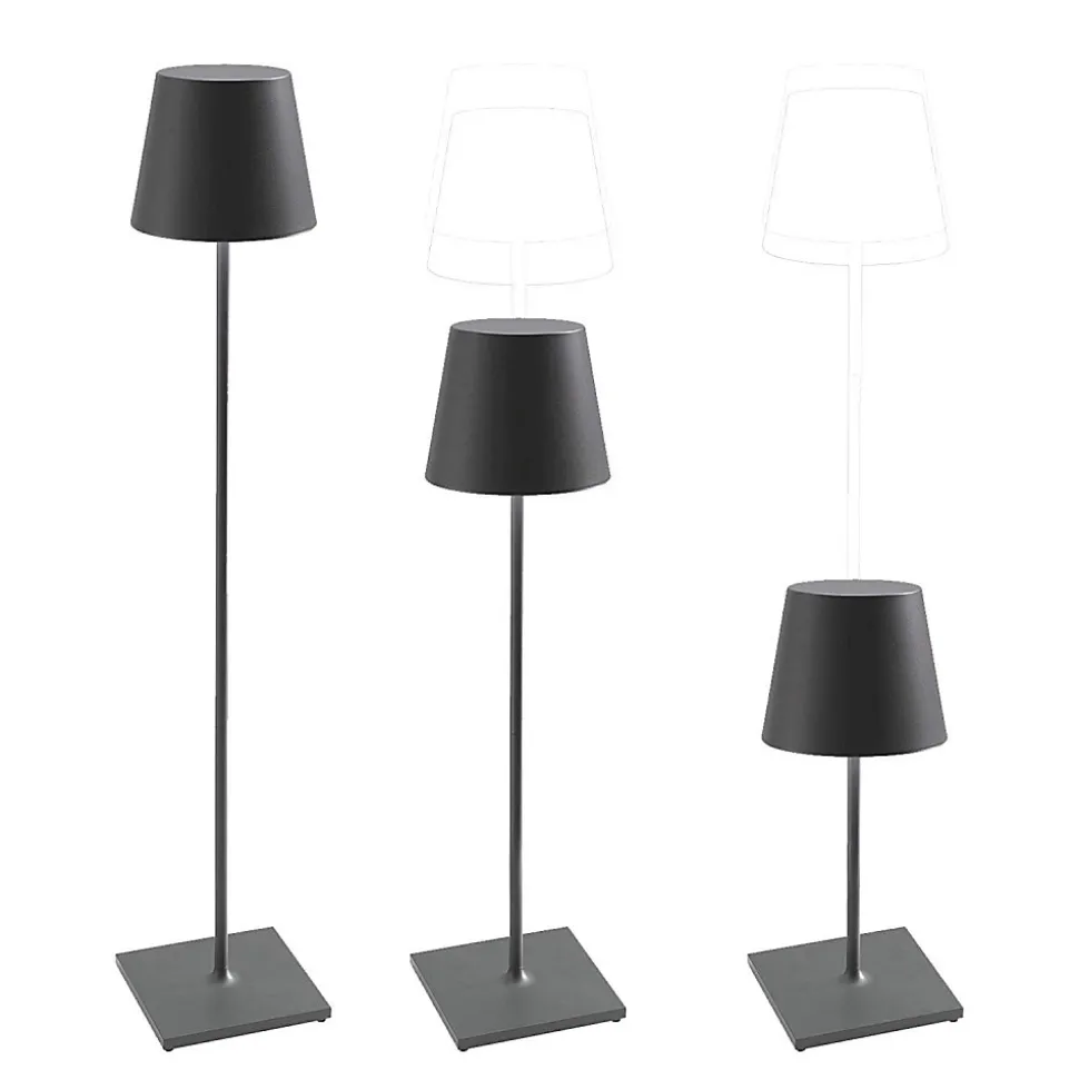 Lampe LED Poldina Pro XXL gris foncé rechargeable et à intensité variable avec batterie intégrée de 10 watts.La batterie du Poldina Pro XXL a une durée de vie garantie de 15 heures à puissance maximale.Poldina Pro XXL a les mêmes fonctions que Poldina Pro dans les versions maxi, sol et table. La batterie se recharge via la base de contact incluse dans le package, mais la durée est portée à 15 heures à intensité lumineuse maximale. Le lampadaire et lampe de table Poldina Pro XXL LED est réalisé en aluminium avec un corps peint en gris foncé, un diffuseur en polycarbonate satiné, où, sur le dessus du diffuseur, se trouve un bouton tactile pour allumer la lampe. En maintenant enfoncé le bouton tactile, vous pouvez régler l’intensité de la lumière à votre guise. Poldina Pro XXL est une lampe design qui peut être utilisée selon deux modes, de table et de sol, comme lampadaire. Idéale pour une utilisation dans les salons, les terrasses de bars, les pavillons et à l’intérieur des restaurants. Elle est également largement utilisée dans les chambres et les studios professionnels comme lampe LED design.La collection Poldina Pro XXL possède un indice de protection IP54 qui la rend adaptée aussi bien à un usage interne qu’externe.Poldina Pro XXL avec montage à trois hauteurs différentes, au choix, entre 69 cm, 81 cm et 150 cm. La couleur de lumière de Poldina Pro est une lumière chaude 2700K ou 3000K, avec un blanc dynamique, vous avez la possibilité de choisir la couleur de lumière que vous préférez.Seul ou en compagnie, fidèle complice depuis plus de 15 heuresPoldina Pro XXL est une lampe de table LED de la marque AI LATI. Dimension : Ø28×69/81/150 cm de hauteur. Flux lumineux du Poldina Pro XXL : 510 lumens. IRC>80.Poldina Pro XXL a les mêmes fonctionnalités que Poldina Pro mais dans la version Maxi.Poldina Pro XXL est disponible en différentes couleurs que vous pouvez retrouver ICI