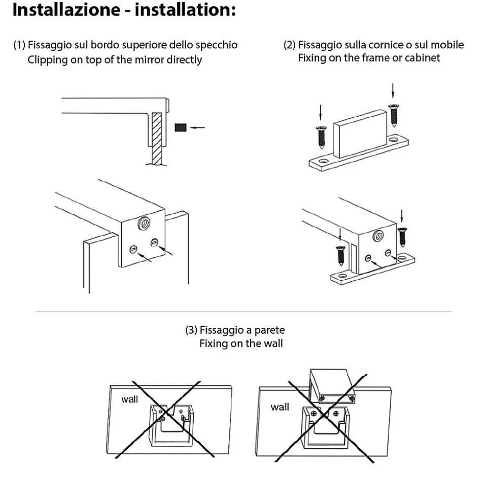 - Comprend : Lampe, Adaptateur pour installation sur cadre, Idéal pour miroirs de salle de bains à ras du mur ou sans cadre