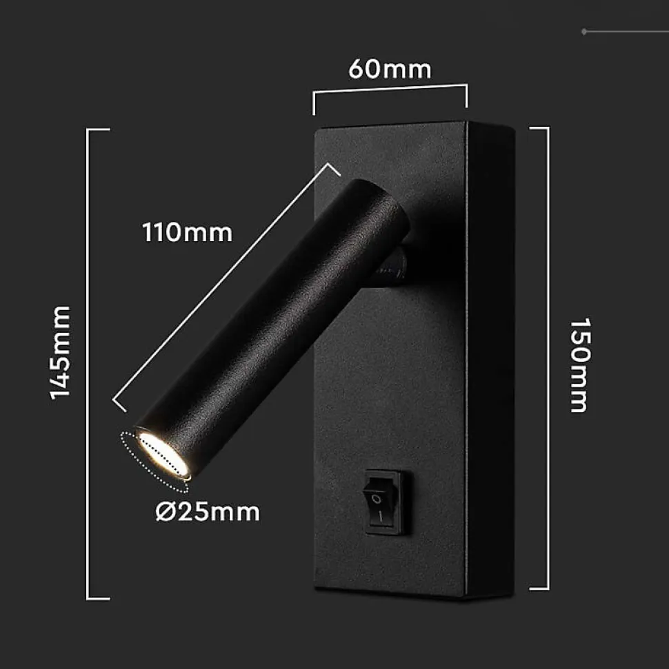 Ajoutez une touche de modernité à vos espaces avec la Lampe Murale 2W avec Interrupteur Noir. Conçue pour offrir un éclairage précis et élégant, cette lampe est parfaite pour créer une ambiance chaleureuse dans les salons, chambres ou bureaux, tout en s’intégrant parfaitement dans des décors contemporains.Caractéristiques de la Lampe Murale 2W avec Interrupteur NoirDiscrète et compacteCette lampe murale noire est un choix parfait pour les intérieurs modernes, alliant un design sobre et un éclairage précis. Compacte et élégante, elle s’intègre facilement dans des environnements où l’on recherche un éclairage subtil mais efficace. Avec ses dimensions compactes (145 x 150 x 60 mm), elle peut être installée dans des espaces réduits tout en offrant un éclairage efficace. Avec son design noir moderne, elle s’intègre harmonieusement dans les intérieurs contemporains, tout en apportant une touche de sophistication discrète à votre décoration.Éclairage cibléSon angle d’éclairage de 38° permet de diriger la lumière là où vous en avez le plus besoin, que ce soit pour mettre en valeur une zone particulière ou pour créer une ambiance douce. Grâce à son interrupteur intégré, elle est facile à utiliser au quotidien, que ce soit dans un coin lecture, au-dessus d’un lit ou pour un éclairage d’appoint dans un bureau. Sa lumière ciblée et douce permet de créer une ambiance intime et chaleureuse.Chez Silamp France, nous vous proposons des solutions d’éclairage modernes, fiables et certifiées CE & RoHS. Avec une garantie de 2 ans sur tous nos produits, vous pouvez profiter de votre achat en toute sérénité. Notre service client est à votre disposition pour répondre à toutes vos questions et vous accompagner dans vos projets d’éclairage.