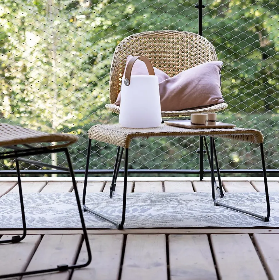 Lampe nomade d’extérieur Transformez vos soirées estivales avec la Lampe Nomade d’Extérieur de Cémonjardin. Conçue pour allier design élégant et fonctionnalité, cette lampe est l’élément indispensable pour apporter une ambiance chaleureuse et accueillante à vos moments en plein air.Mobilité et Flexibilité Avec ses dimensions compactes (21 cm de hauteur et 18 cm de diamètre) et sa poignée coloris camel, cette lampe nomade allie style et praticité. Son design en polyéthylène blanc apporte une touche moderne et raffinée à tout espace, qu’il soit intérieur ou extérieur.Lampe rechargeable Profitez d’une liberté totale avec cette lampe sans fil. Grâce à sa batterie Lithium-Ion intégrée de 2000 mAh, vous pouvez l’utiliser partout, même sans prise électrique à proximité. Parfaite pour les jardins, les soirées sur la terrasse ou les escapades en plein air, cette lampe est toujours prête à vous suivre.4 niveaux d’intensité Créez l’ambiance parfaite grâce à la lumière blanche chaude de la lampe, réglable sur 4 niveaux d’intensité. Que ce soit pour une lecture tranquille ou pour une fête en plein air, ajustez facilement la luminosité pour répondre à vos besoins et à vos envies.Résistante aux intempéries Elle est également dotée d’une protection IP44 contre les jets d’eau, ce qui la rend résistante aux intempéries.