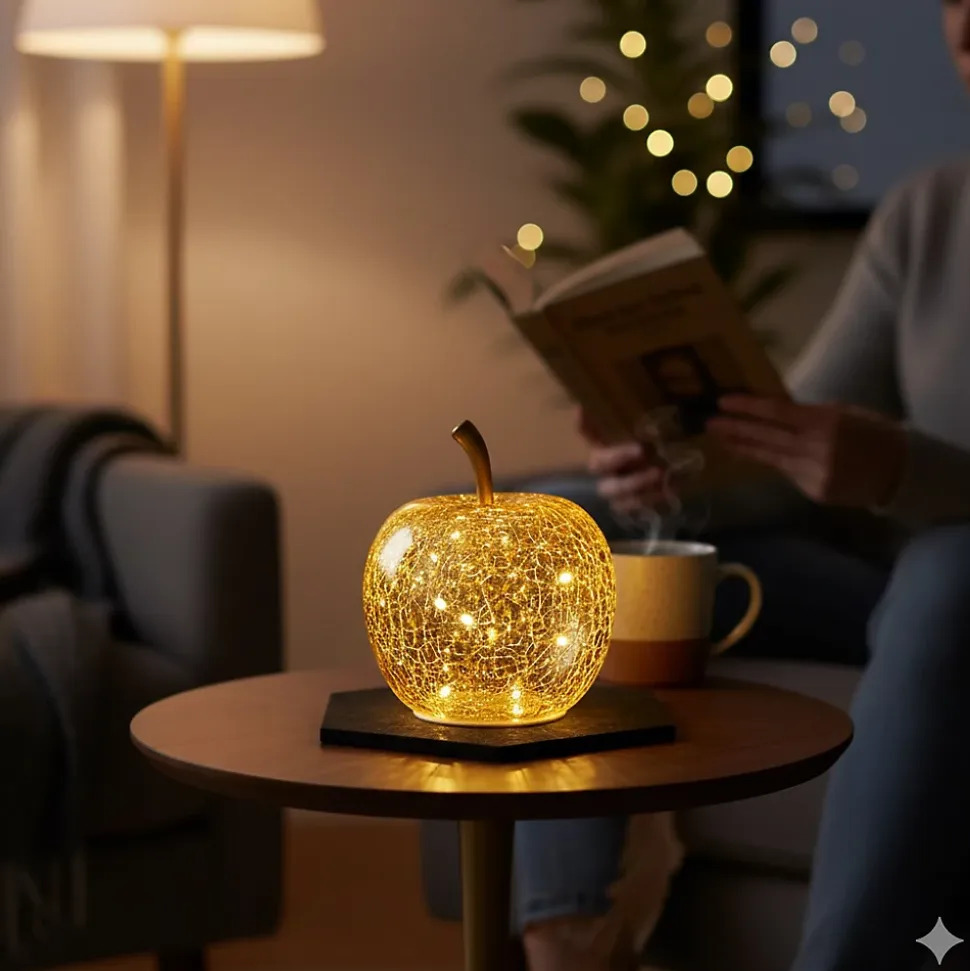 Apportez une touche chic et féérique à votre intérieur avec cette élégante pomme décorative en verre transparent, illuminée de l’intérieur par une guirlande de 10 LED. Son verre effet craquelé diffuse une lumière douce et scintillante, idéale pour créer une ambiance chaleureuse dans le salon, une chambre ou sur une table de fête. Sa tige dorée lui donne une finition raffinée et moderne, parfaite pour une décoration lumineuse tout au long de l’année (Noël, fêtes, centre de table, vitrine, étagère…). Grâce à sa minuterie intégrée, elle s’allume et s’éteint automatiquement pour un usage pratique au quotidien. Caractéristiques : Pomme déco en verre transparent Effet craquelé, reflets lumineux 10 LED intégrées Minuterie : 6h ON / 18h OFF Fonctionnement : 2xAAA (non incluses) Dimensions :