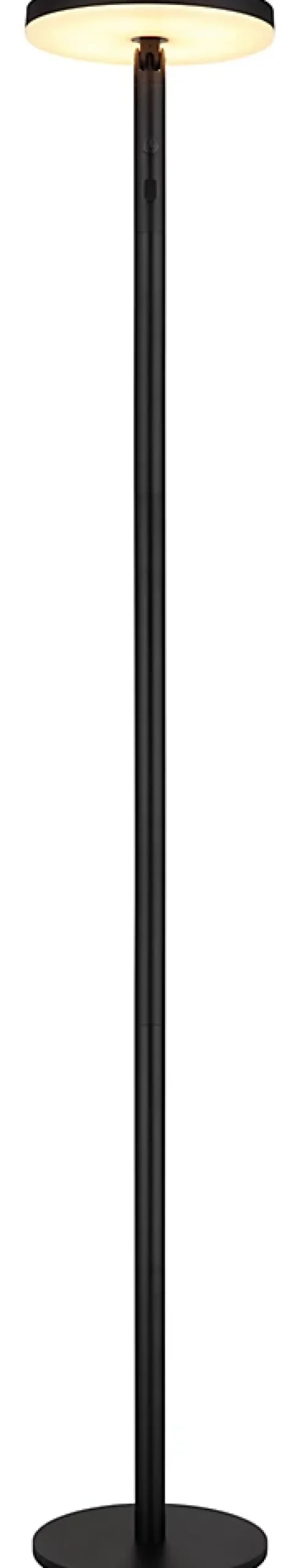 Lampe solaire aluminium noir mat, métal noir mat, plastique noir mat, plastique opale, câble PVC Noir, interrupteur, Touche tactile On/Off, Variateur tactile en continu, excl. adaptateur, USB-A 2.0 – USB-C, Mobile, Batterie incluse CR18650 2200mAh 3.7V, IP54, ø: 230mm, H: 1450mm, Longueur du câble 2000mm, incl. LED 6W 230V, 100-1000lm Source, 50-550lm Output, CCT 1800/2700/3000K