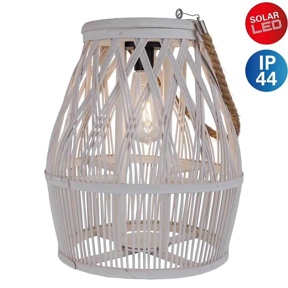 Avec cette lampe solaire tendance de la collection KORBINIAN, vous apportez de la luminosité à votre espace extérieur. Illuminez votre jardin ou votre terrasse avec cette lampe solaire ! Elle crée dans votre espace extérieur une atmosphère moderne, de bon goût et accueillante. Une lampe de style naturel qui séduit par sa conception harmonieuse et ses matériaux de qualité. La forme arrondie et l’aspect décoratif sont ici parfaitement combinés. Grâce à la finition robuste de la corbeille, la lampe solaire devient un véritable objet polyvalent, la couleur blanche souligne son design moderne. Cet article a une taille de 29 cm (longueur) x 29 cm (largeur) x 34 cm (hauteur). La lampe solaire est équipée de 1 LED à haute efficacité énergétique, qui garantissent un éclairage agréable et durable. La lampe s’allume et s’éteint très facilement grâce à l’interrupteur coulissant. La prise USB supplémentaire vous permet d’alimenter facilement et confortablement vos appareils lorsque la force du soleil ne suffit pas. Un capteur crépusculaire intégré veille à ce que le luminaire s’allume automatiquement à la tombée de la nuit. Grâce à la classe 3 et au type de protection IP44, le luminaire est parfaitement adapté à une utilisation en extérieur. Les luminaires extérieurs à énergie solaire offrent une option d’éclairage durable et économique, qui séduit par sa facilité d’installation et sa polyvalence. Ils permettent un éclairage esthétique des espaces extérieurs tout en contribuant considérablement à réduire la consommation d’énergie.