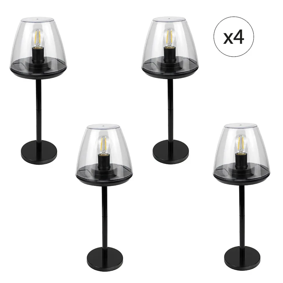 . Waterproof IP65 . Batterie de 500 mAh . Lumière blanc chaud . Temps de charge de 8h . Autonomie de 6h . Panneau solaire intégré pour une installation sans fil . Rechargement solaire . Utilisation extérieure . Lot de 4