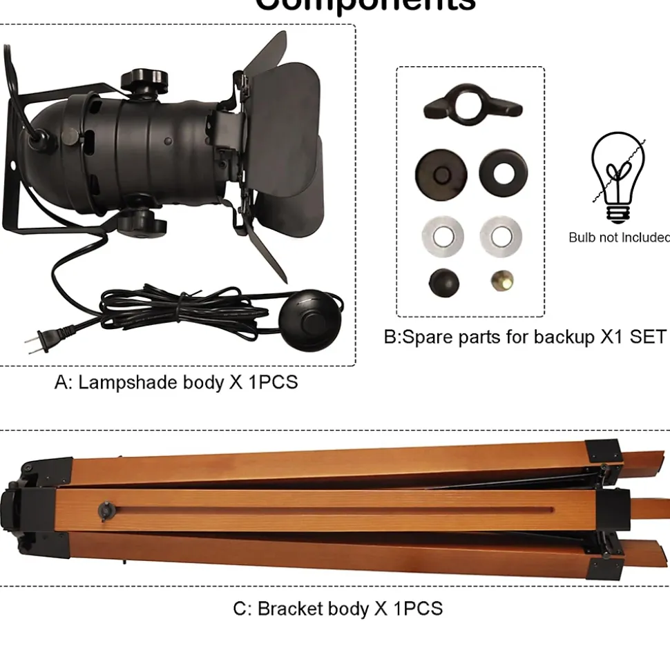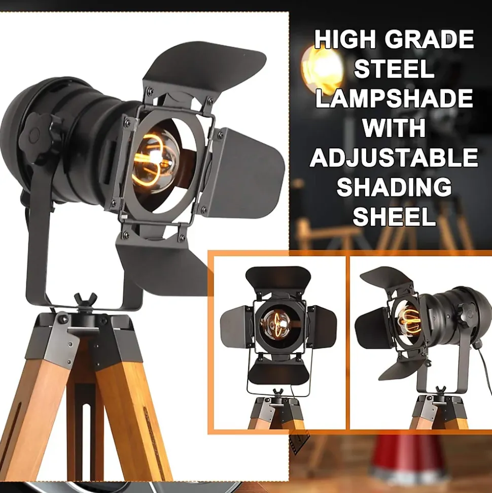 MATÉRIAU DE HAUTE QUALITÉ : La lampe est intégrée avec du bois naturel et un trépied en métal de haute qualité, qui est durable, résistant et esthétique. Son design robuste le rend stable et sûr à proximité des enfants et des animaux de compagnie.Facile à assembler : L’installation de cette lampe sur pied vintage est super facile, vous pouvez l’assembler sans besoin d’outils ou de pièces supplémentaires, il vous suffit de visser toutes les parties du poteau de la lampe en suivant les instructions.Hauteur et tête de lumière réglables : Le design réglable en hauteur et pliable de la lampe sur pied n’est pas seulement réglable dans n’importe quelle direction, mais vous pouvez également régler la hauteur des pieds selon vos souhaits. Avec une base d’ampoule standard E27, la fusion des styles moderne et traditionnel fait de cette lampe un objet accrocheur qui impressionnera vos amis et votre famille. Créez une ambiance confortable pour compléter votre schéma de design intérieur. Sa lueur douce crée un effet apaisant et donne une lumière ambrée chaleureuse.Antidérapant et anti-rayures : En raison de son design unique, cette lampe sur pied peut être facilement transportée et déplacée dans n’importe quelle autre pièce, vous pouvez utiliser les lampes pour le salon, la chambre à coucher, le bureau à domicile ou les étagères. Chaque pied est équipé d’un tampon protecteur pour protéger votre sol des rayures. Parfait pour un coin sombre ou une zone de bar, même excellent pour tout amateur de photographie. Ajoutez singularité et style à n’importe quelle pièce de votre maison ou de votre bureau avec cette lampe sur pied rétro.Matériau : aluminium et boisStyle vintage originalTension nominale : 220-240 V CAPuissance maximale : 40 WOrientable à 180ºHauteur réglable : 1397mm – 939,8mmÉclairage ajustable à 360ºCompatible avec ampoule E27 (non incluse)Indice de protection IP20 : usage intérieur