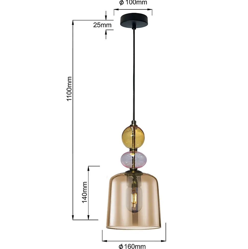 La suspension Tropea associe le verre et le métal dans une élégante finition or vieilli. Ses éléments en verre se déclinent en trois couleurs harmonieuses : ambre et rose poudré. Grâce à cette palette de couleurs variée, la lampe devient non seulement une source de lumière fonctionnelle, mais aussi un élément de décoration unique pour tout intérieur. Elle s’accorde parfaitement avec différents styles d’intérieur, tels que bohème, rétro ou vintage. Grâce à sa hauteur impressionnante, Tropea peut devenir la pièce maîtresse d’une salle à manger, y ajoutant un charme unique. Elle trouve également parfaitement sa place comme élément design dans une chambre.